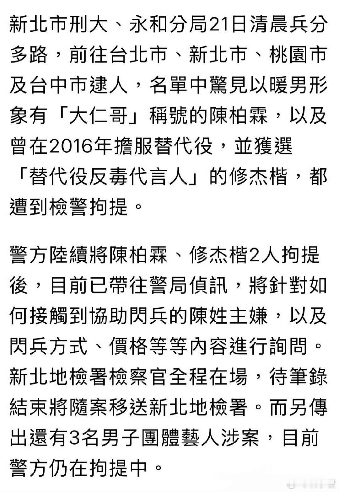 陈柏霖修杰楷被警方拘提​啊你俩[哼]陈柏霖修杰楷涉嫌逃兵役被警方拘提[震惊]