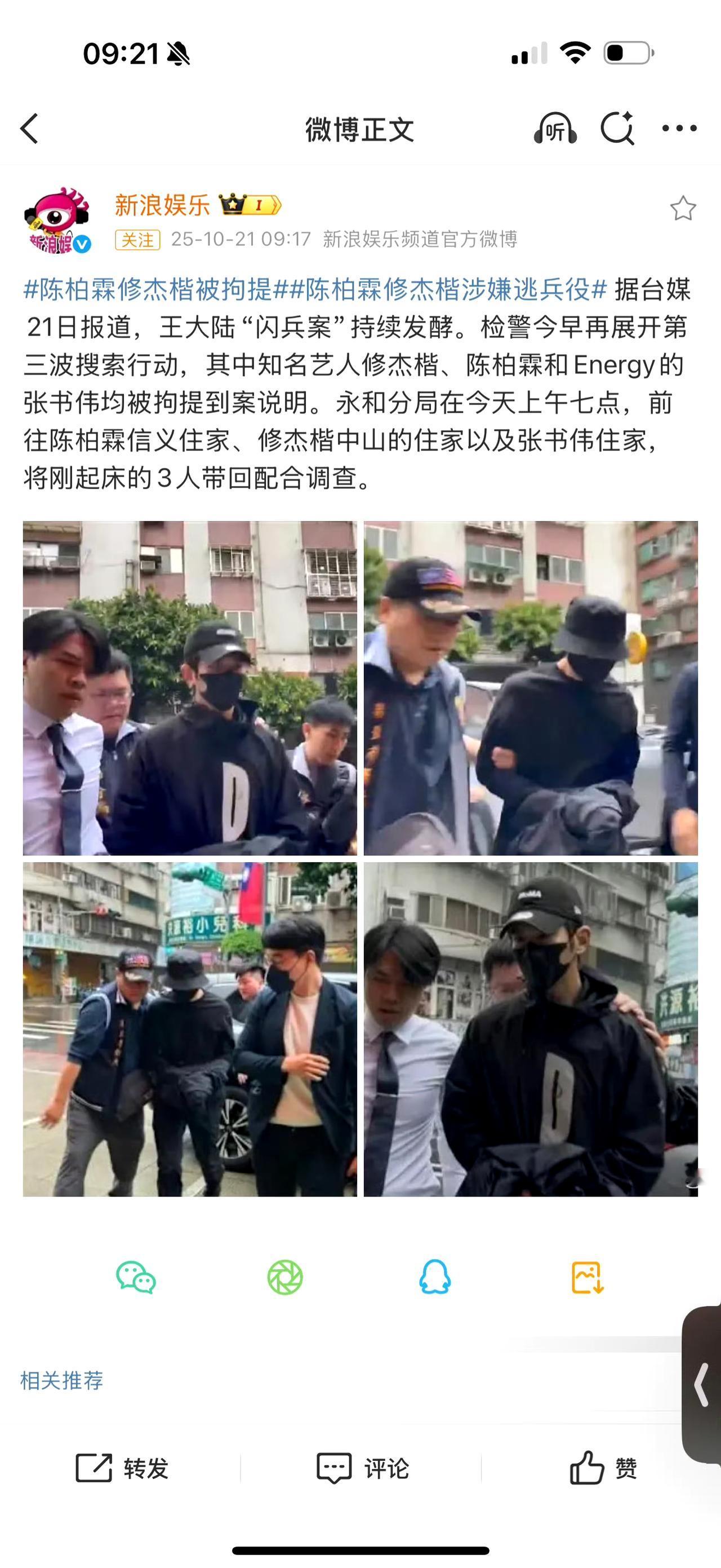 陈柏霖、修杰楷这两人也被警方拘留了? 据说两人也是因为逃兵役的事情,陈柏霖被怀疑是当时制作假的病历,因为之前陈柏霖是有“气喘病”,并且还缺席《大灌篮》的宣传。 而修杰楷是因为“配偶怀孕”的理由,减少服役时间,本来是一年,最后只有五个月的时间。 有点搞不懂,为什么会拒绝服兵役呢?