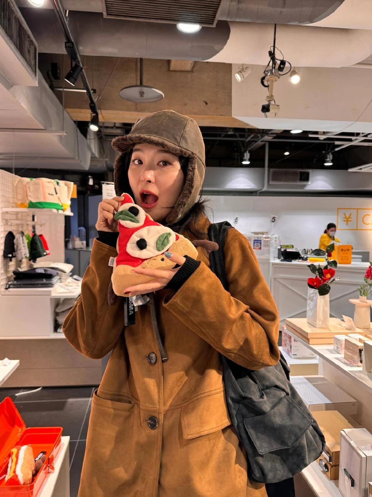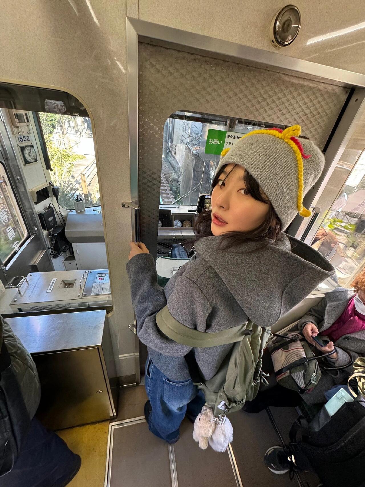 张天爱跟素人合影,胯真的好宽,大宅院似的