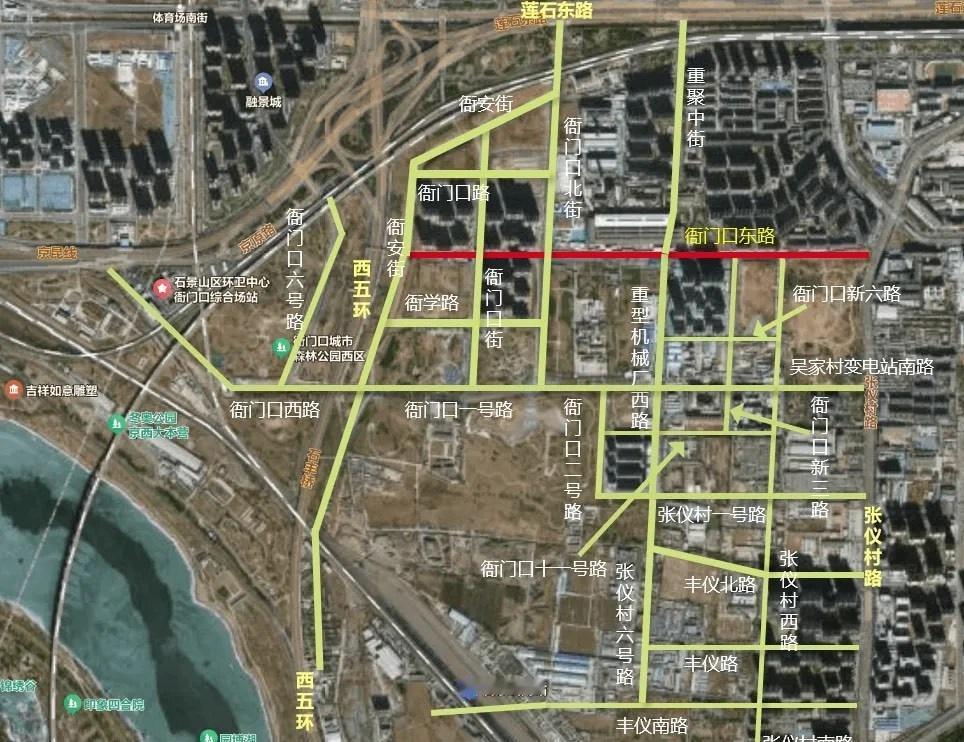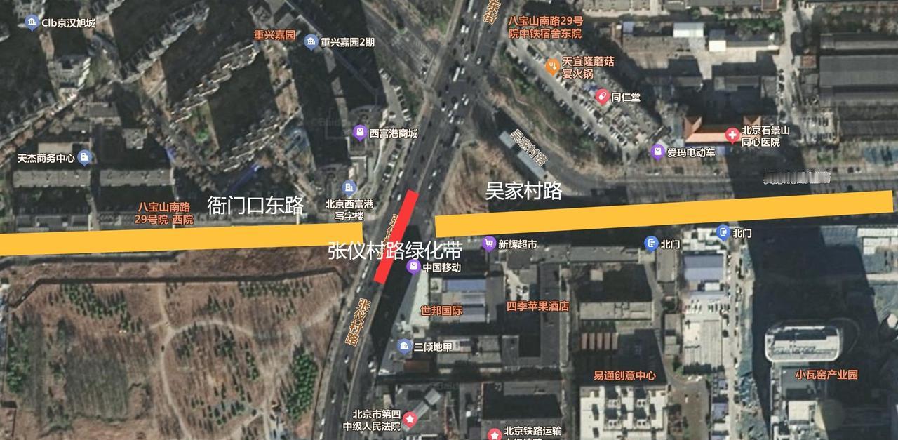 衙门口东路位于石景山衙门口地区是石景山、丰台两区交界的一条道路。 衙门口东路按城市主干路标准建设,全长约1.67公里,规划红线宽度40米,设置双向4条机动车道(原规划为4-6车道,由于配备绿化带,故为4车道)并配备绿化带、两侧非机动车道及步行道,配套完善照明、交通标识等设施。由市公联公司担纲该道路的建设主体。衙门口东路西段已经建成通车了,唯独东段(西起安佑街,东至张仪村路)一直处于建设中。 衙门口东路打通吴家村路的工程包含在衙门口东路整体工程中,路口打通工作待中央隔离带树木伐移工作完成后推进实施。此前,石景山区城管委就披露,东段计划于2025年年底前全线通车,届时道路将直通丰台区张仪村路,实现跨区连通。 @点小评@城市向导官@点小E