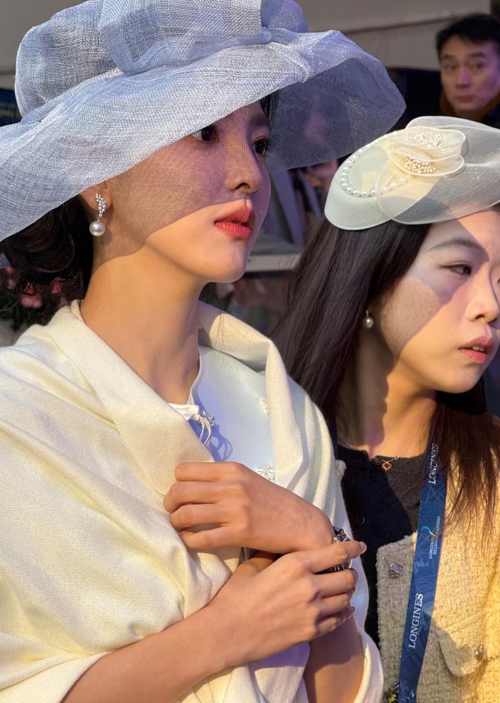 章若楠给我一种早年宋慧乔的感觉[泣不成声] 在北京国际马术大赛现场偶遇章若楠,那穿搭简直绝了!一身英伦马术风公主裙,淡蓝主色调搭配精致的白色外套,再配上一顶同色系的复古礼帽,活脱脱就是从民国走出来的留洋大小姐,优雅又贵气。 生图里的她更是能打,皮肤状态好到发光,珍珠耳环一戴,精致感直接拉满。往那儿一坐,举手投足都是优雅范儿,和马术大赛的高端格调适配度满分。 当天北京好冷呀,女明星也是不容易,不管多冷的天气,为了穿搭好看,也必须穿单薄的礼服,章若楠都冷的缩成一团了。