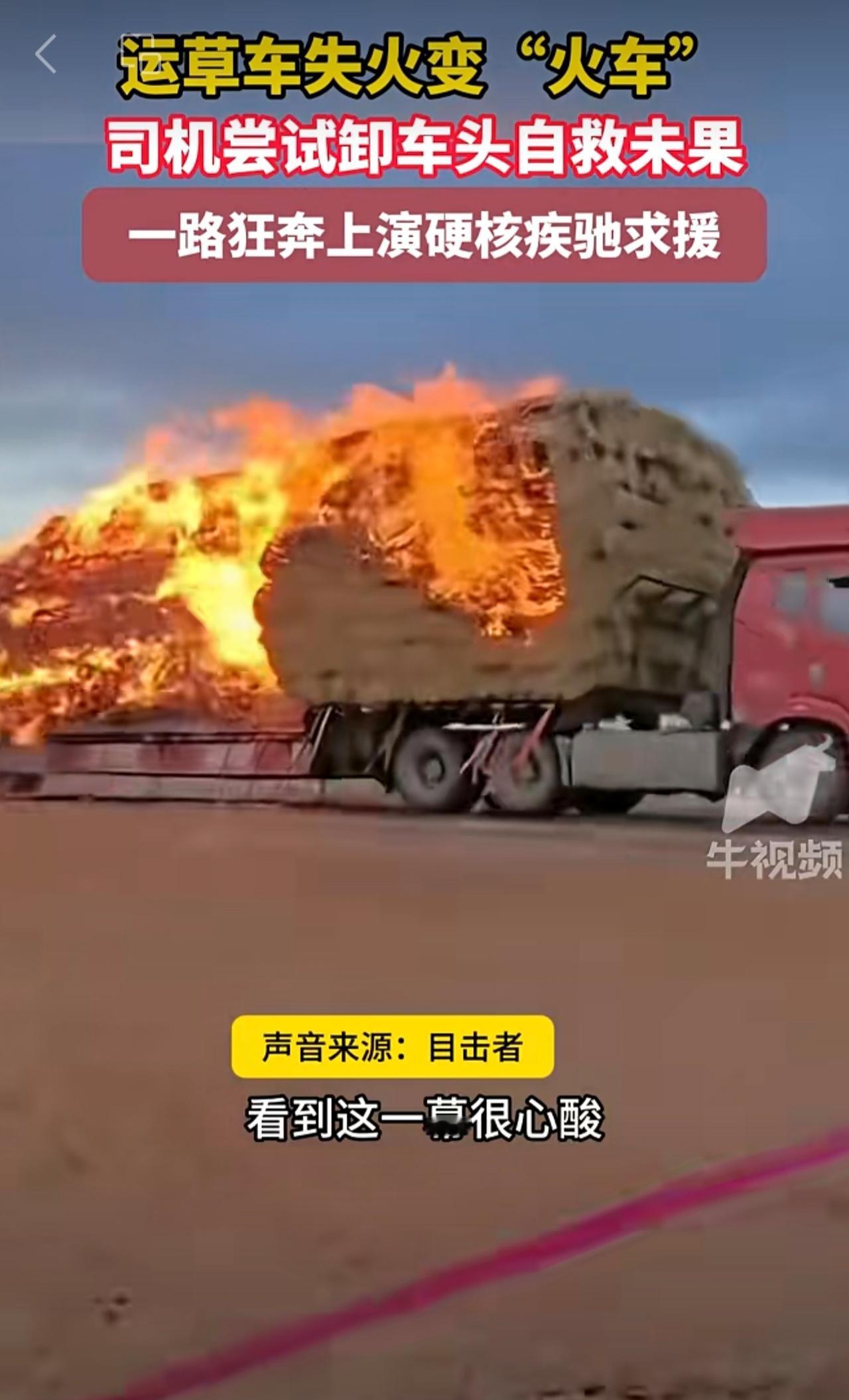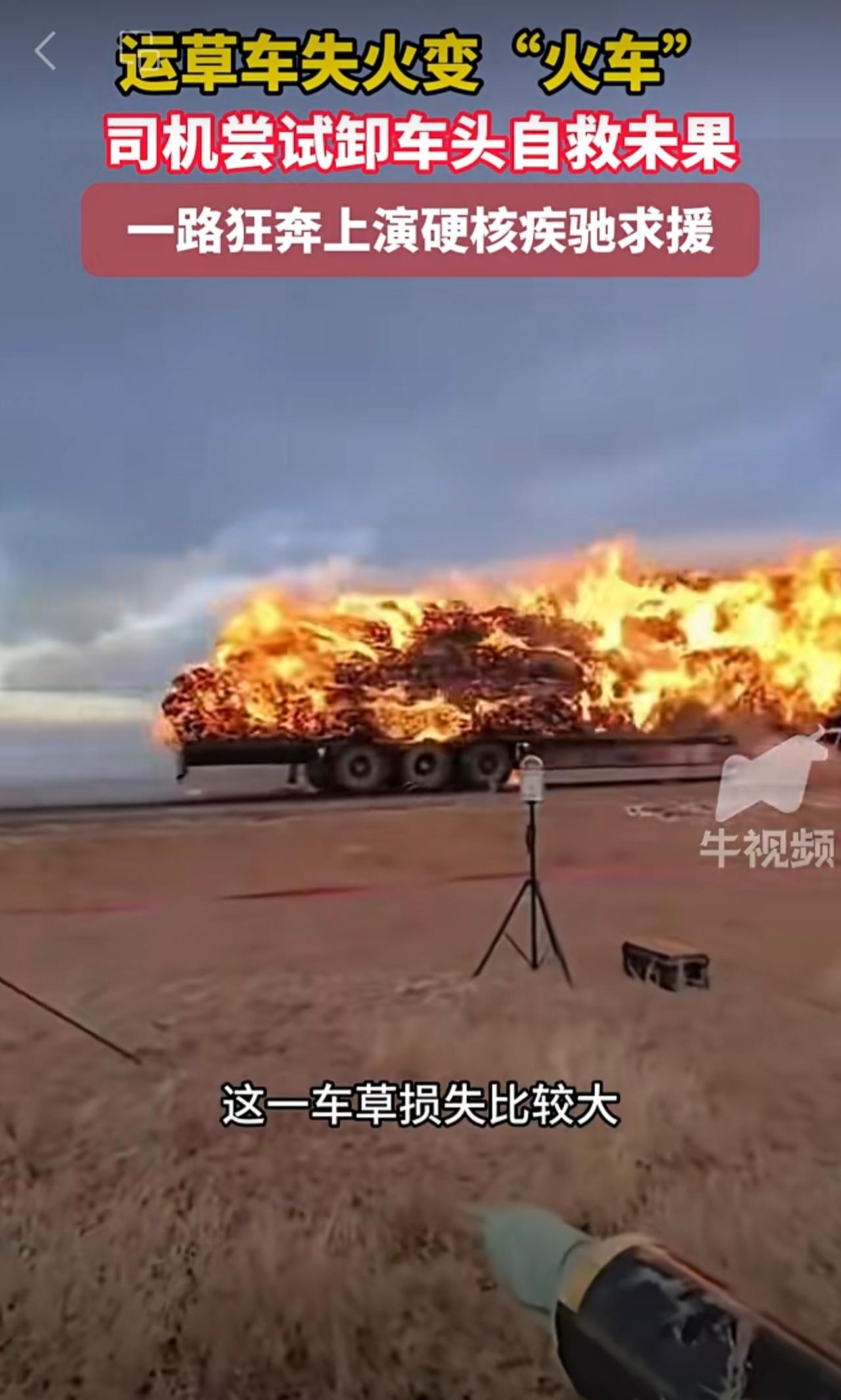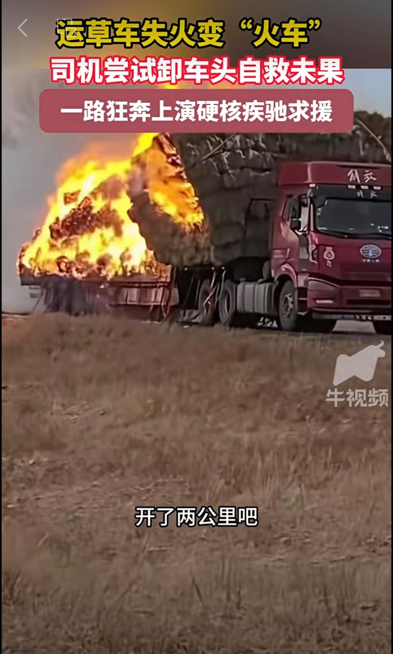 运草车失火变“火车”司机尝试卸车头自救未果,一路狂奔上演硬核疾驰求援 。
