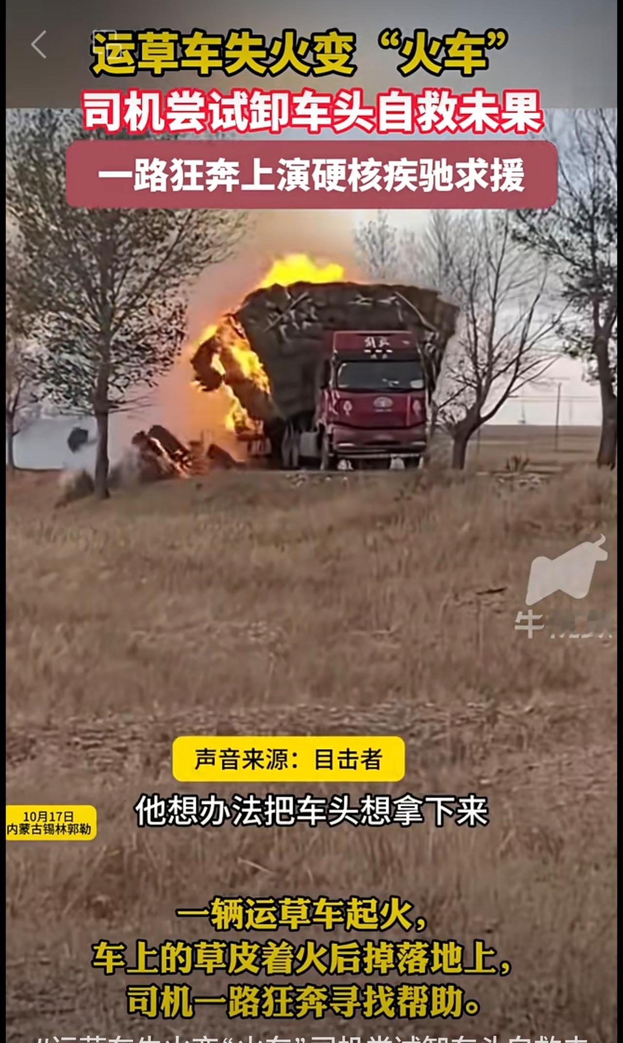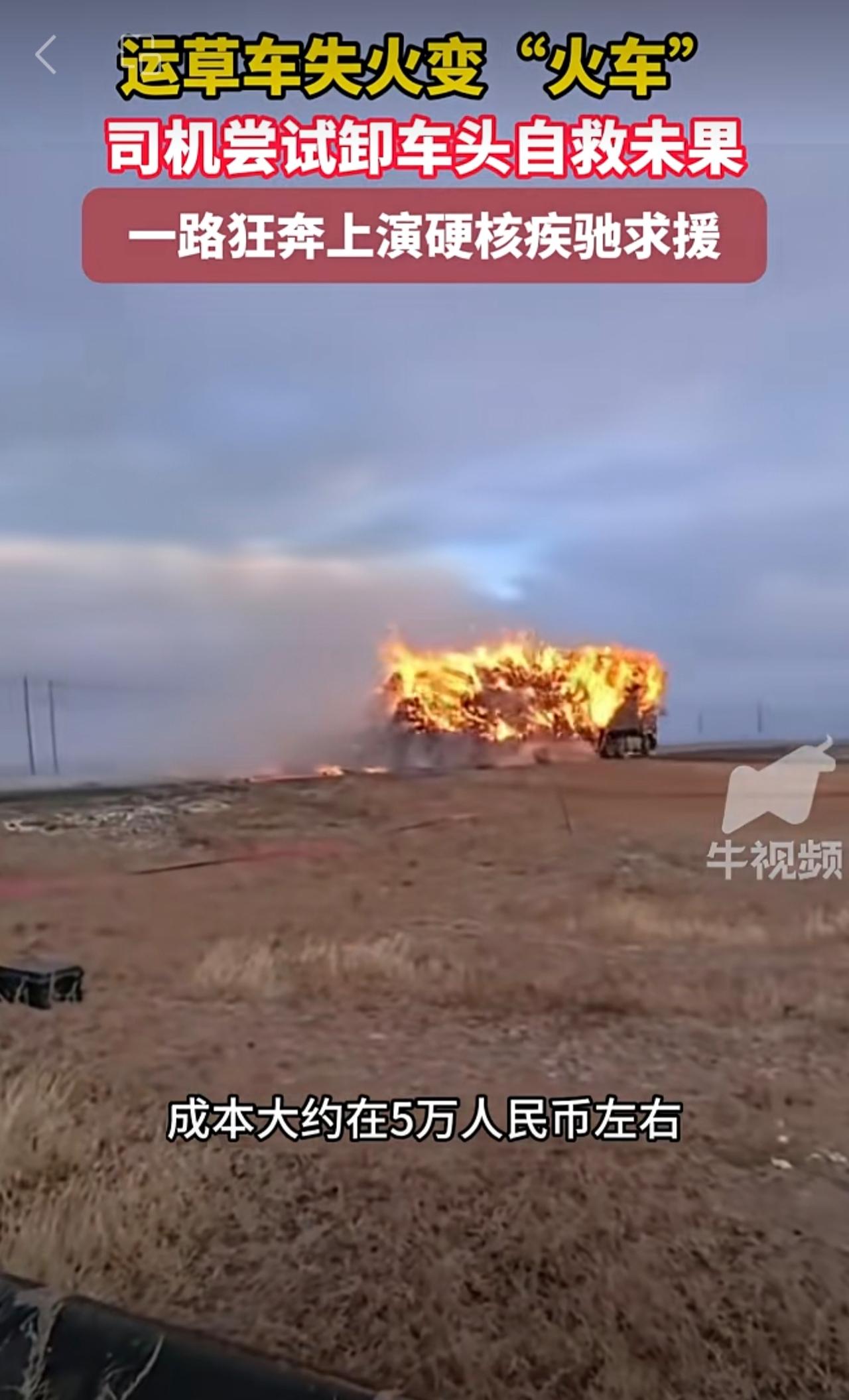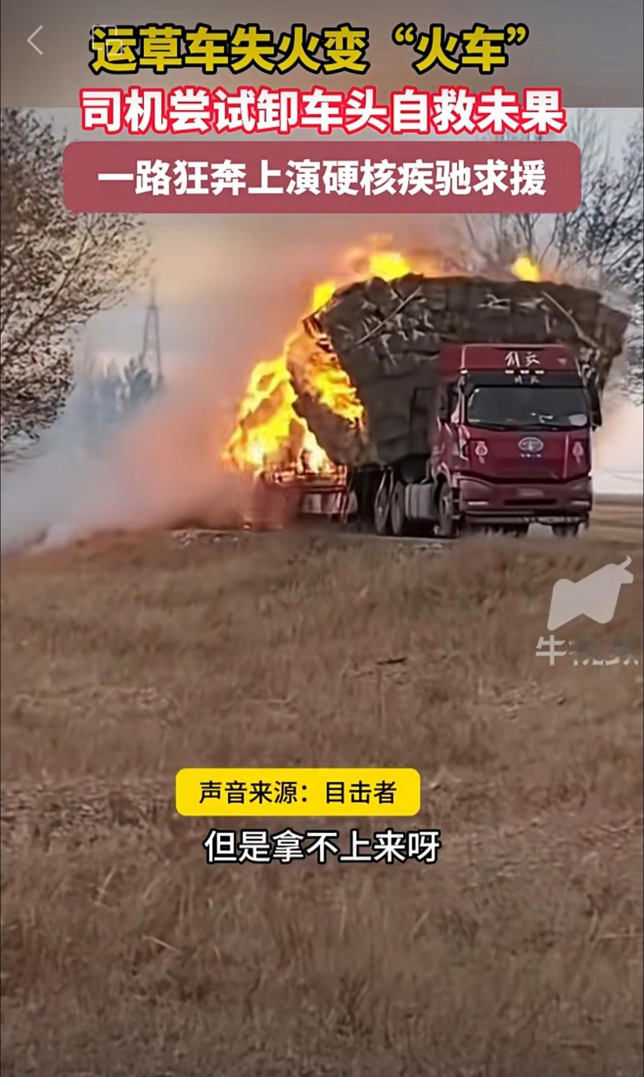 运草车失火变“火车”司机尝试卸车头自救未果,一路狂奔上演硬核疾驰求援 。
