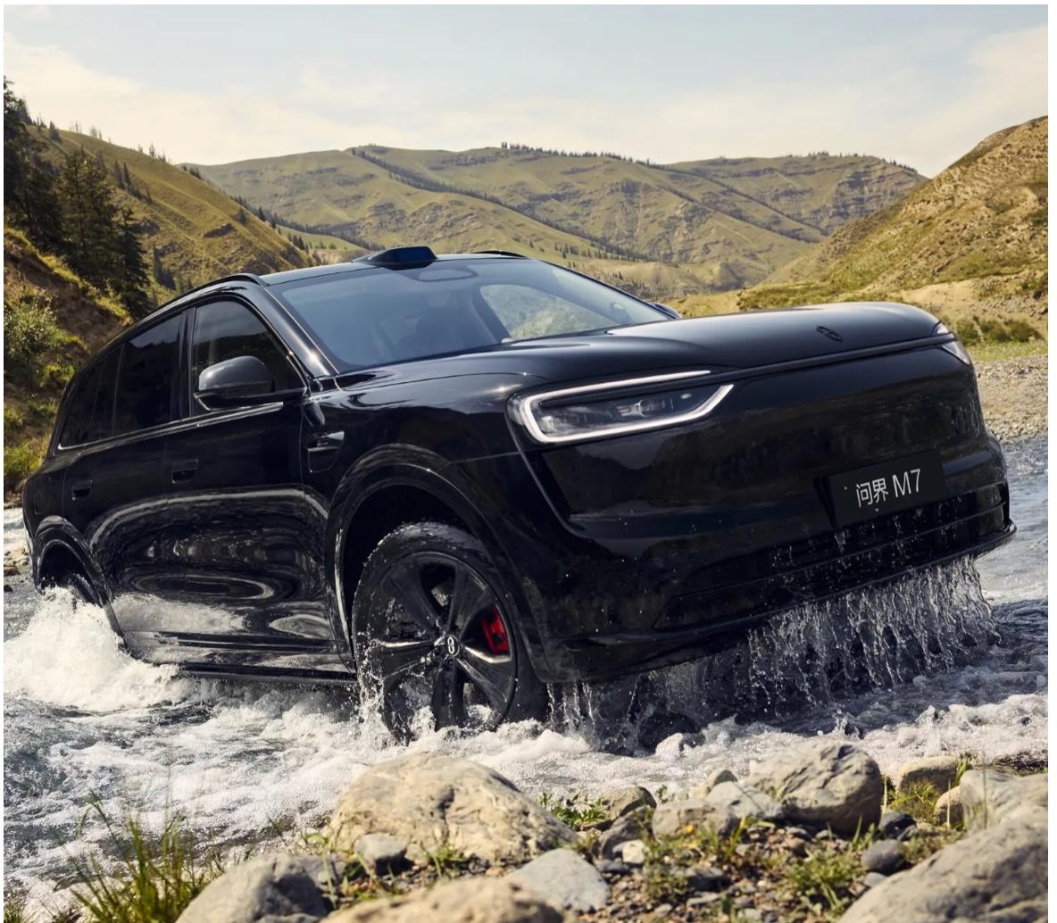 问界M7是赛力斯汽车与华为联合研发的一款高端智慧汽车,定位于中大型SUV,提供增