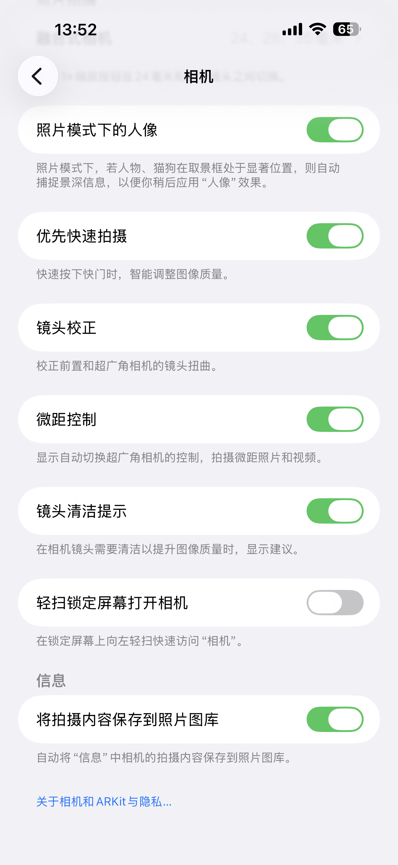 升级到iOS26.1Beta4最好的开关,锁屏状态左滑打开相机终于可以关了