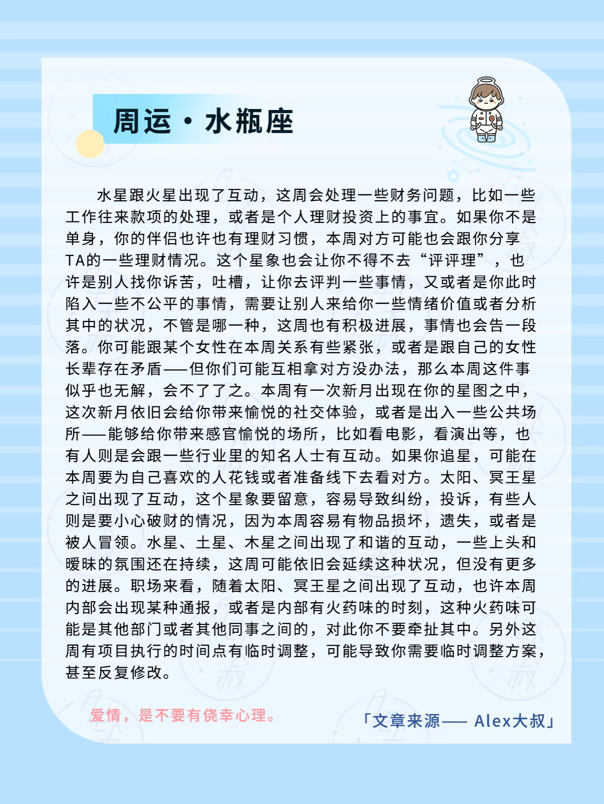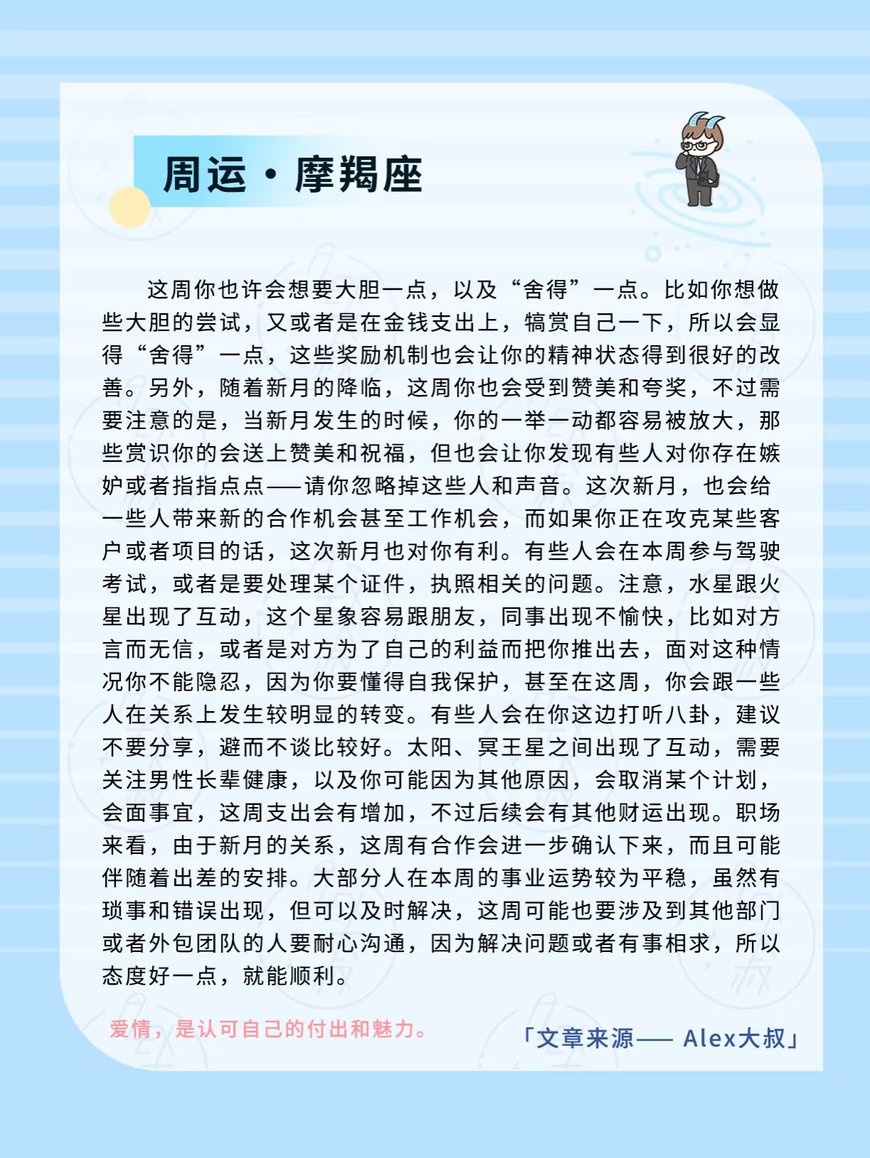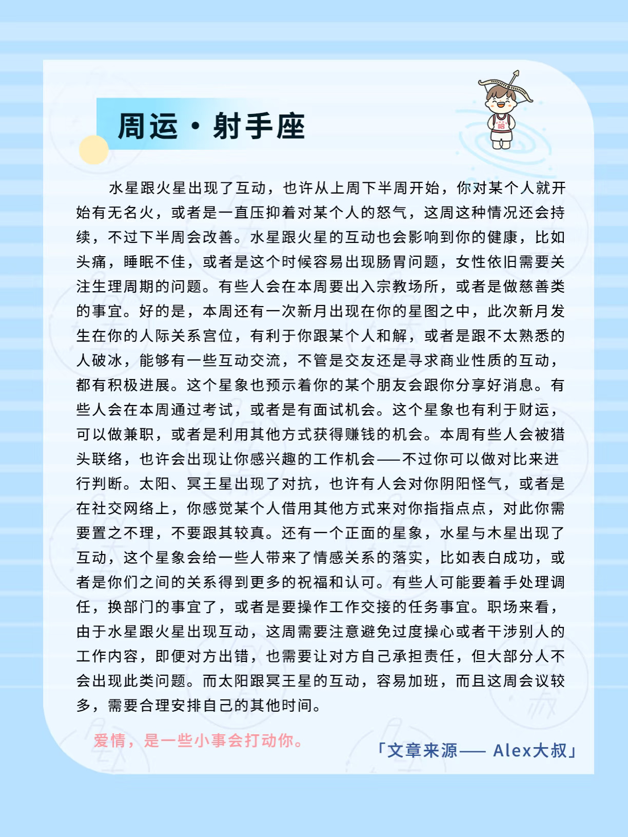 水星跟木星、土星出现了和谐的互动,本周也很适合拓展人际关系,结交新的朋友,有些人会网友见面,可能此时自己也会发现新的爱好让自己上头,热爱的文娱作品,或者是娱乐活动,也会丰富自己的时间。这两个星象也会给许多人带来新的朋友,新的客户资源,而且可能许久不联系的客户关系,也会再次维护起来。