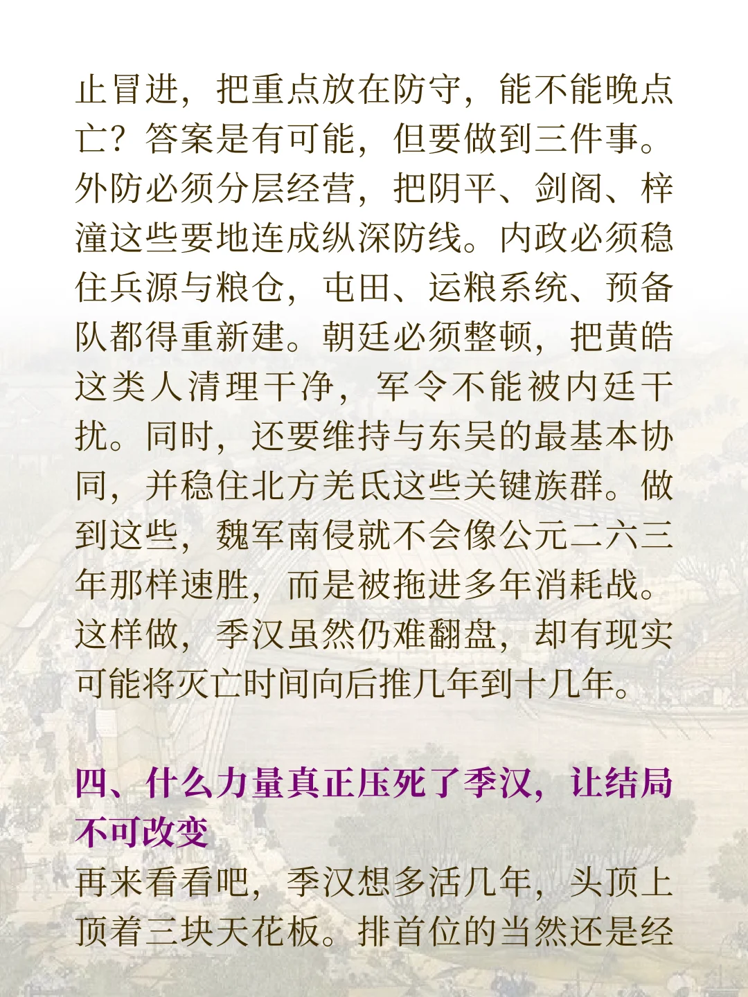季汉真正的结局,不是改变亡不亡,而是选择怎么亡和亡得什么时候。这背后的逻辑我越看越唏嘘,也越清晰,你觉得呢?