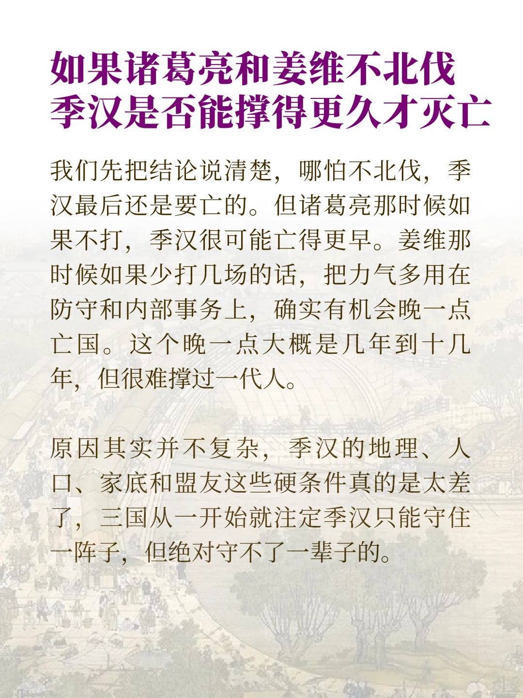 如果诸葛亮姜维不北伐,季汉能否撑得更久?