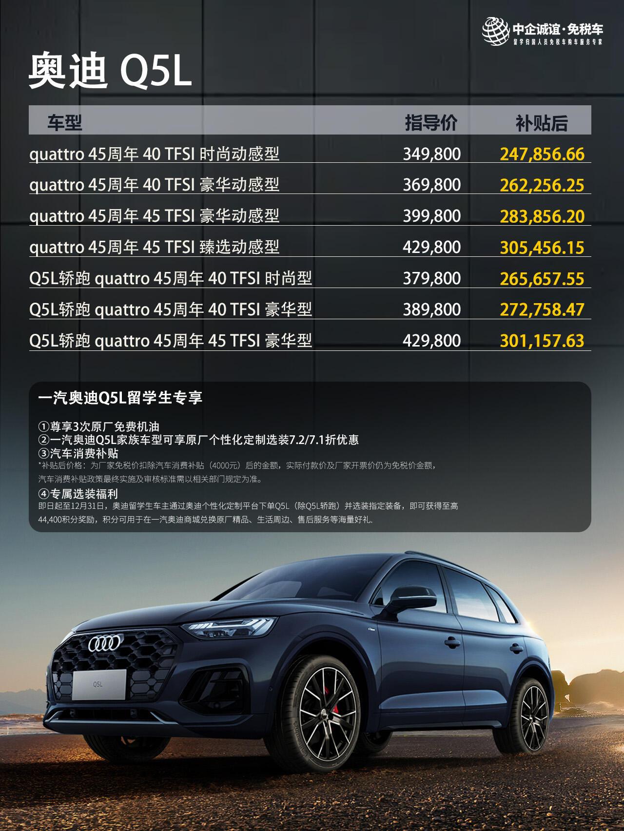 近日,2026款一汽奥迪Q5L实车图从经销商渠道流出,作为年度改款车型,新车以配置调整为核心亮点,延续经典设计语言的同时进一步提升产品竞争力,指导价区间锁定34.98万-39.98万元,将与宝马X3、奔驰GLC L等竞品展开激烈角逐。 外观上,2026款奥迪Q5L基本延续现款车型的家族式设计,大尺寸进气格栅搭配犀利的灯组造型,依旧保持着豪华中型SUV的沉稳气场。值得关注的是,新车中高配车型标配黑光包(低配车型可选装,价格2500元),对进气格栅、侧裙饰条、车窗饰条、外后视镜壳等多处细节进行黑化处理,运动氛围瞬间拉满。此外,新车提供传奇黑、阿科纳白、纳多灰、律动蓝四种外观配色,还可在黑光包基础上额外支付500元选装扩展黑光包,将前后Logo及尾标升级为黑色,满足消费者个性化需求。 车身尺寸方面,新车长宽高分别为4770/1893/1667毫米,轴距达2907毫米,定位于中型SUV,车内空间表现与现款车型保持一致,能够很好地兼顾家用与日常通勤。轮辋方面,新车提供19英寸和20英寸两种尺寸,并搭配多种造型可选,进一步丰富了选择空间。 内饰部分,2026款奥迪Q5L沿用经典设计风格,平底方向盘、悬浮式中控屏与电子挡杆的组合,既保留了奥迪的科技感,又兼顾了操作便利性。内饰配色提供黑色、岩石灰、欧卡皮棕和阿拉斯红四种选择,可根据不同审美偏好搭配,提升车内氛围感。 配置调整是此次改款的核心。其中,40TFSI时尚动感型新增远光辅助系统和Car2X智能网联系统,提升行车安全性与智能化体验;40TFSI豪华动感型升级明显,新增20英寸轮辋、远光辅助系统、Car2X智能网联系统、外后视镜记忆及前排主驾座椅记忆等实用配置,不过取消了红色刹车钳、感应式后备厢开启和不锈钢踏板;45TFSI豪华动感型则新增前后排座椅加热、远光辅助系统和Car2X智能网联系统,仅取消后车门Logo贴。需要注意的是,新车全系取消了前后脚垫配置,略显遗憾。 动力方面,新车继续搭载2.0T高/低功率发动机,低功率版(40TFSI)最大功率140千瓦,最大扭矩320牛·米;高功率版(45TFSI)最大功率180千瓦,最大扭矩370牛·米,传动系统均匹配7速湿式双离合变速箱和适时四驱系统,动力表现成熟稳定,满足不同用户的驾驶需求。 从市场表现来看,今年9月奥迪Q5L以12315辆的销量位列中型SUV榜单第8位,其主要竞品华晨宝马X3指导价34.99万-44.99万元,北京奔驰GLC L指导价42.78万-53.13万元。2026款奥迪Q5L凭借更具诚意的配置升级和亲民的价格定位,在豪华中型SUV市场中竞争力进一步提升,未来能否在销量上实现突破,值得期待。