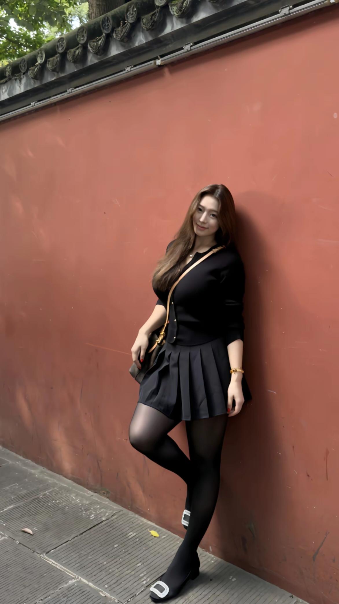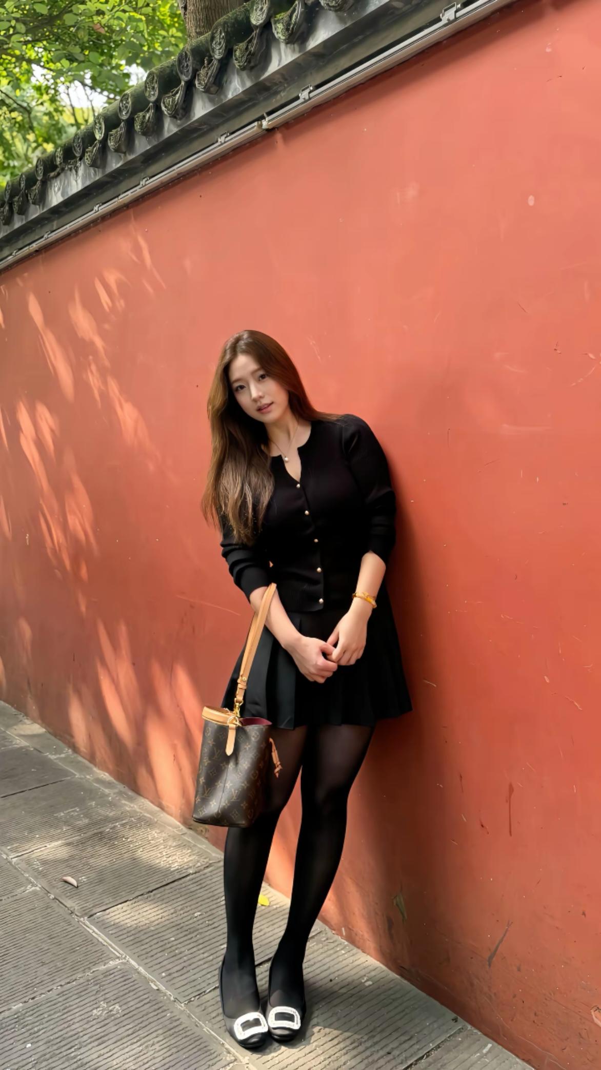 优雅黑裙,气质女神,轻松坐出迷人姿态