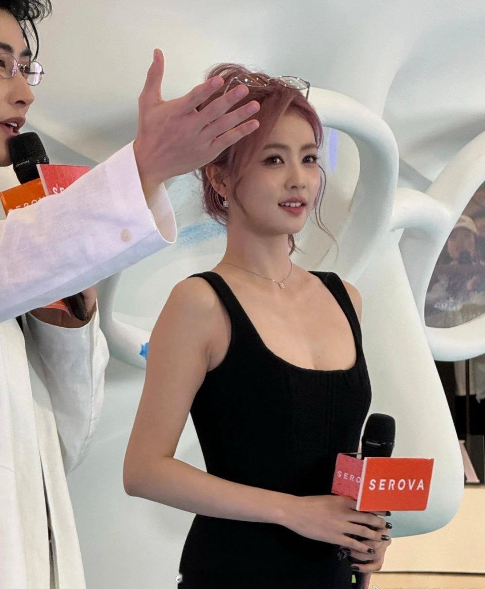 白鹿今天活动造型,粉发黑裙银色眼镜,如何?