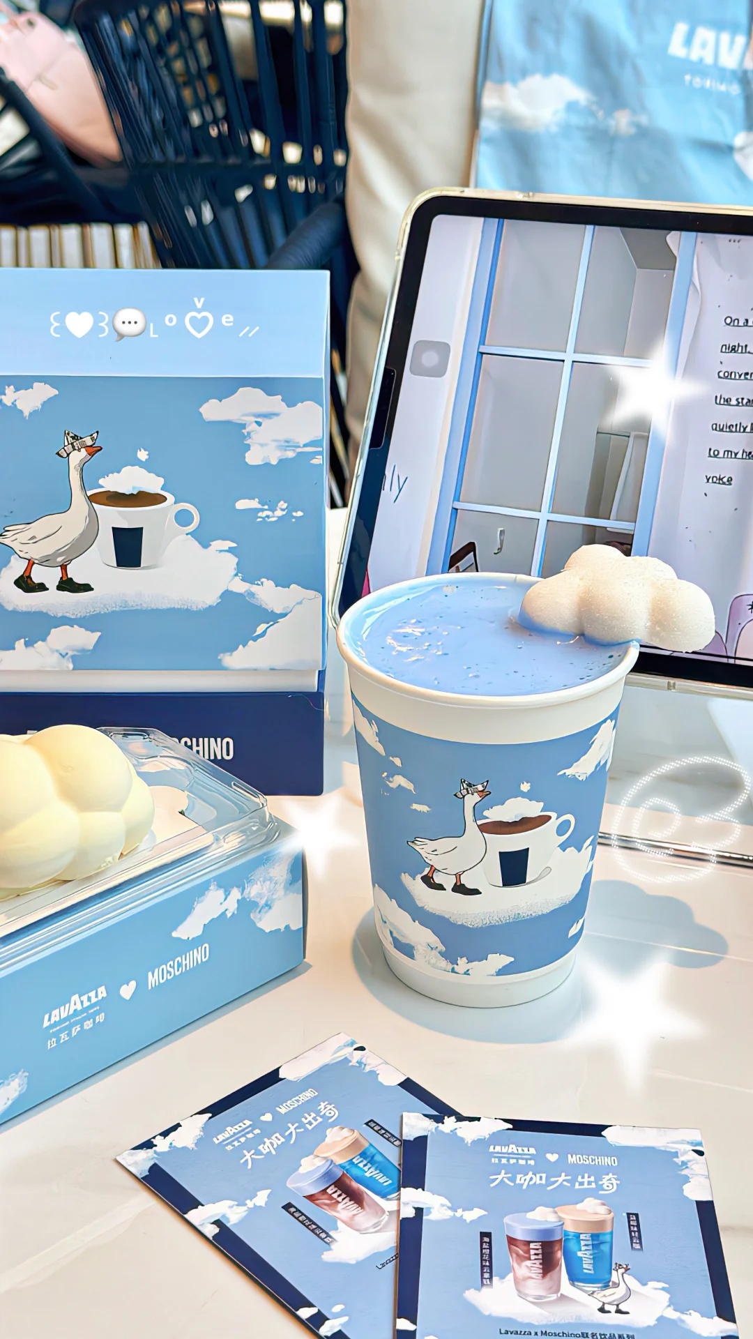 🗺️10.20-11.9号,49r起购买云端漫步双杯套餐!得Moschino联名款蓝天白云帆布袋☁️尊嘟好好看耶!!