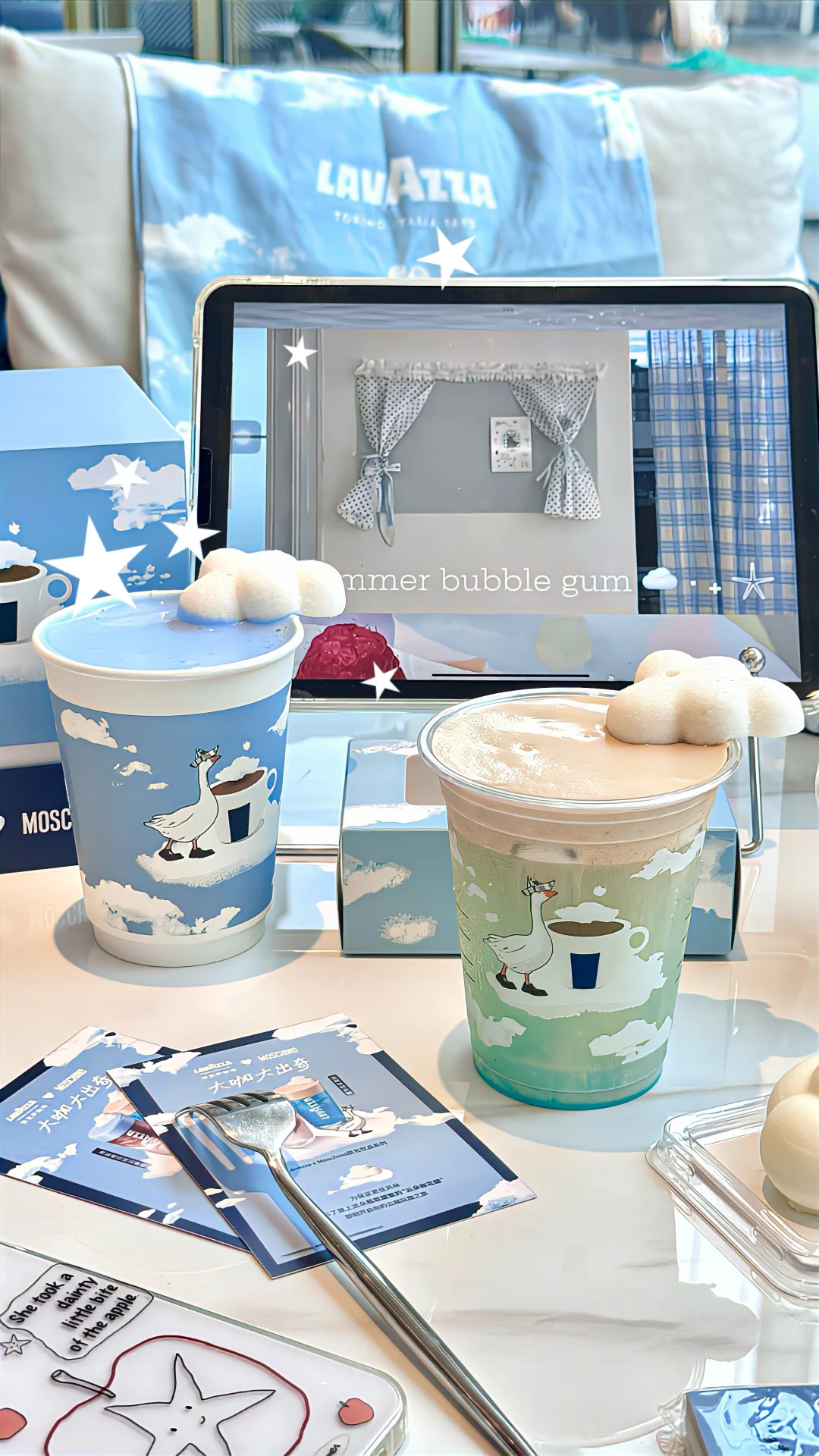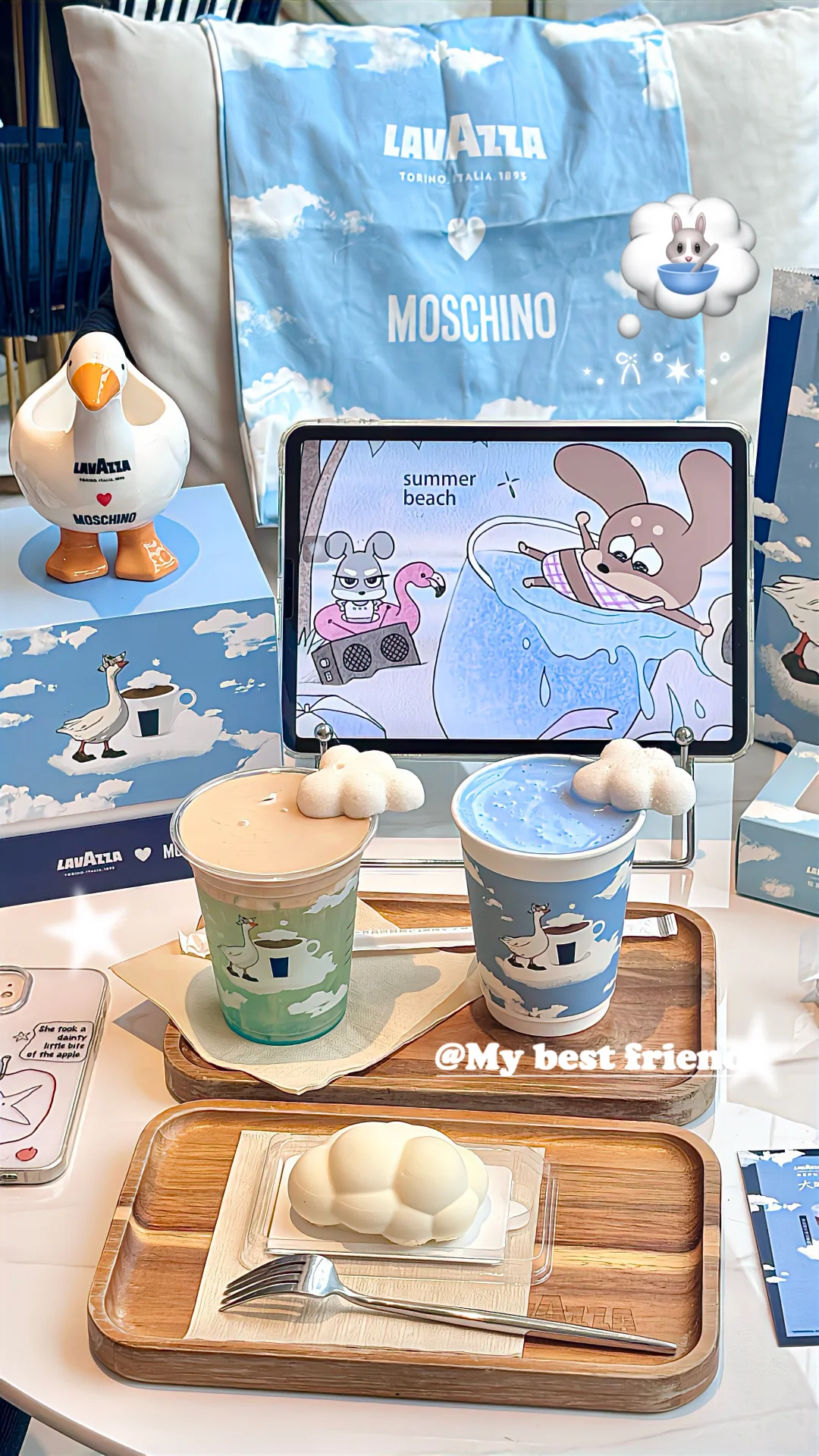 🌁:哦莫!!要被Lavazza美晕啦~Lavazza&Moschino意式基因强强联合☕️肿么这么会做饮品捏🤏🏻尊嘟有被可爱到🐄萌萌的棉花糖☁好好拍!!