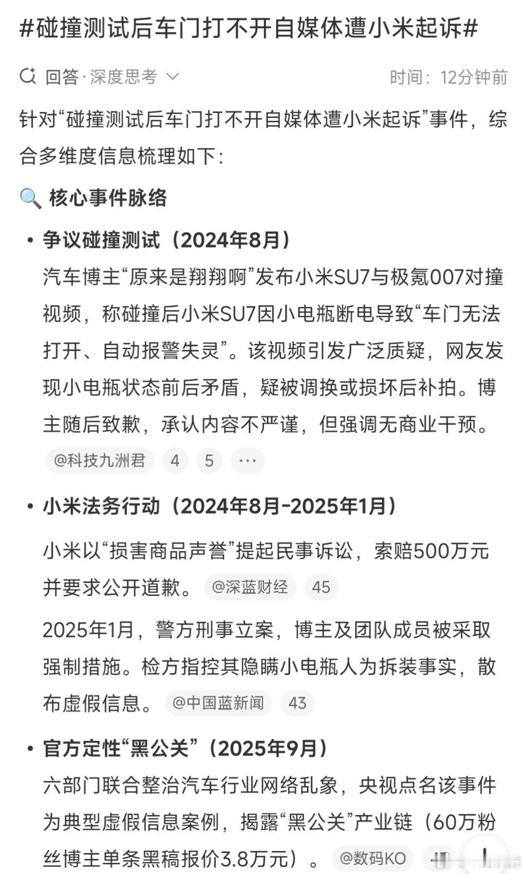 碰撞测试后车门打不开自媒体遭小米起诉去年的事,咋今年又上热搜了?[疑问]