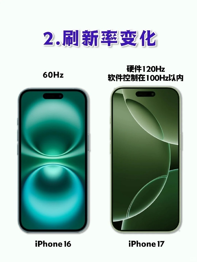 [星星] 刷新率大升级,硬件从 60Hz 提到 120Hz,不过苹果刀法稳,软件把它控制在 100Hz 以内,把 120Hz 专属留给 Pro 系列;