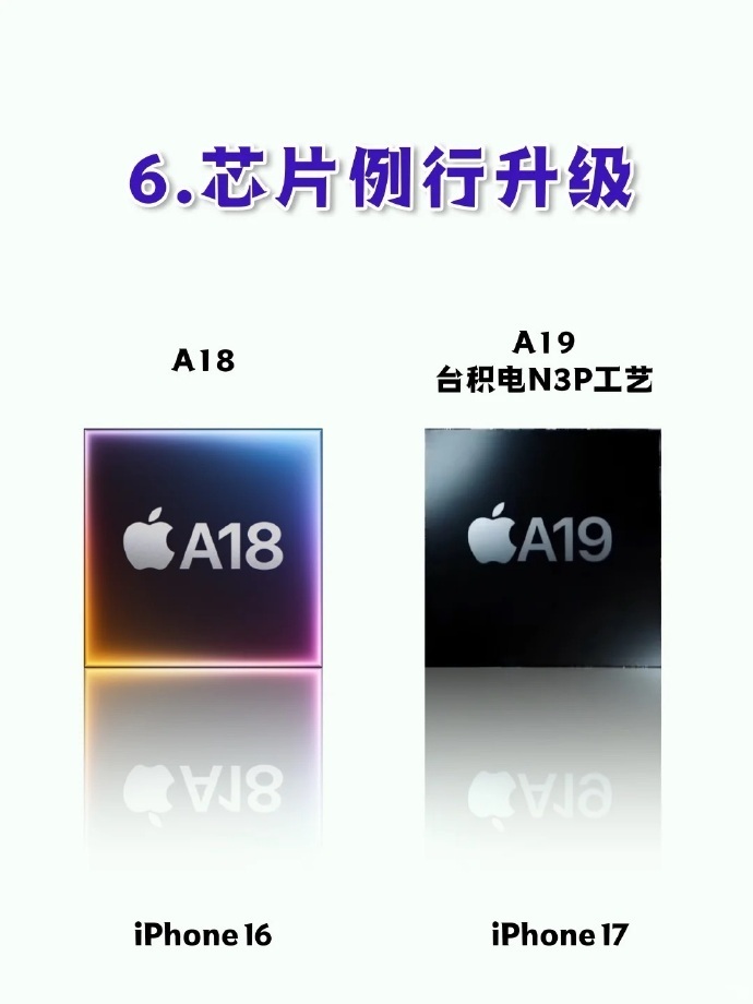 [星星] 芯片例行升级,A18 换代成 A19,性能更强;