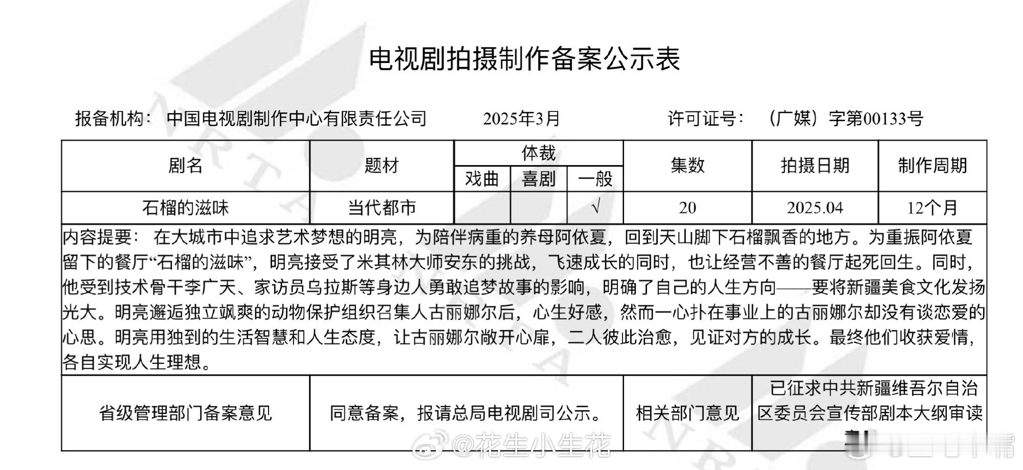 红石榴餐厅定档备案20集!!很快就播完[允悲]最开始叫《石榴的滋味》,今年5月开机,播出之前改名《飘香的日子》,10月定档播出时叫《红石榴餐厅》!