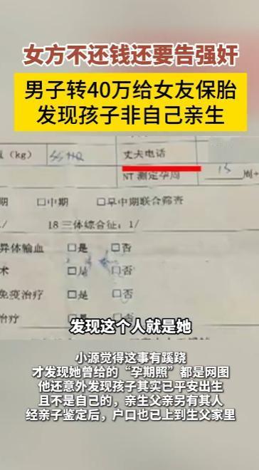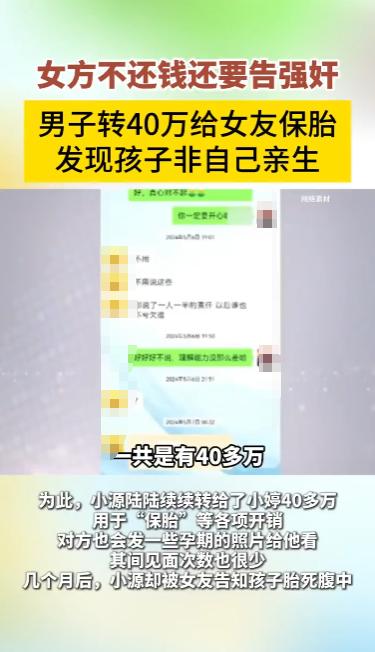 “电视剧都不敢这么演!”10月15日,重庆,一男子给女友转40万元保胎,谁知女友不久后竟然告知胎儿已经没了心跳,男子觉得事有蹊跷,经过一番调查,他惊讶地发现孩子早已出生,而亲生父亲另有其人! 一男子两年前在朋友聚会上认识了女友,两人互生好感,关系越来越亲密,没过多久,女友告诉男子她怀孕了,要求男子负责。 得知女友怀孕,男子前前后后给她转了40多万元,用于保胎养胎和产检,期间两人很少见面,几乎都是在聊天软件上交流,女友经常会发自己产检的照片给男子看。 谁知,几个月后女友忽然告知男子“胎死腹中”,男子一下察觉到不对劲,他仔细检查女友之前发来产检、b超照片,发现竟然都是些网图,这可把男子气得不轻。 这还不是最炸裂的,经过一番调查后,男子发现女友已经把孩子生了下来,也已经上了户口,只不过孩子的亲生父亲不是他,一家三口还在社交平台上发全家福。 男子觉得自己当了冤大头,他咽不下这口气想找女友理论,要回损失,不料女友却反诬他强迫自己发生关系,无奈之下,男子只能将其告上法庭。 不少网友感觉认为男子太单纯了,女友的行为已经称得上是诈骗,有些人觉得这比网剧还离谱,外出交朋友一定要谨慎,交往男女朋友更要擦亮双眼! 信息来源:《女友怀孕要40万安胎费,孩子出生后男子发现不是自己的。》观威海