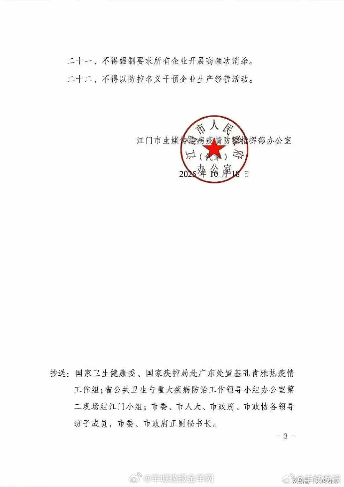 此次发布的22条“负面清单”精准回应了前期防控中的突出问题,覆盖民生保障、执法规范、企业生产等关键维度。针对此前媒体曝光的灭蚊人员入户取走居民绿植、强制开锁等争议现象,函件明确禁止“非法进入居民家”“随意处理居民绿植”“非法处置他人财产”等行为,相关部门已对涉事行为开展上门致歉等整改工作。