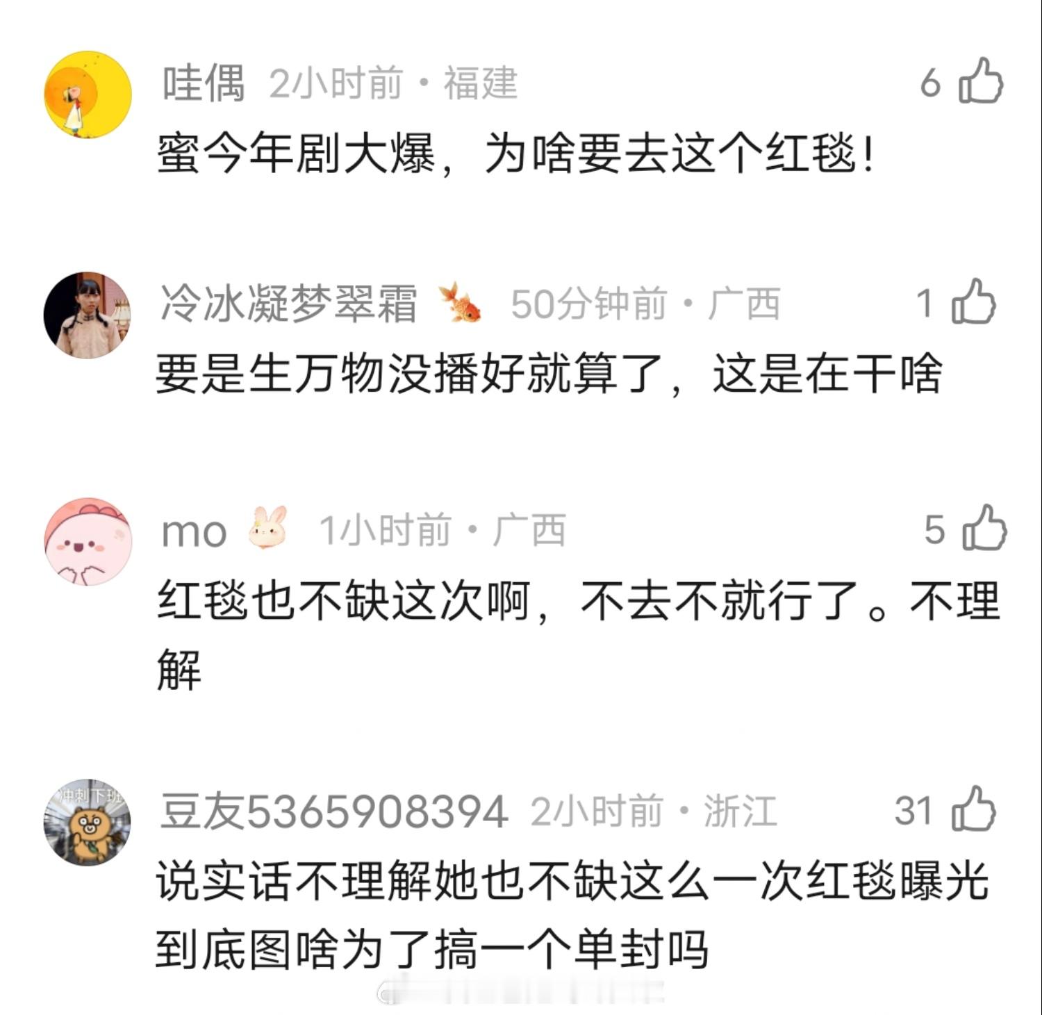 网友表示不理解,红毯顺序代表咖位,怎能参加vogue的活动处处被压。同期85花都不去,杨幂去是为了什么,明明今年生万物播的这么好?