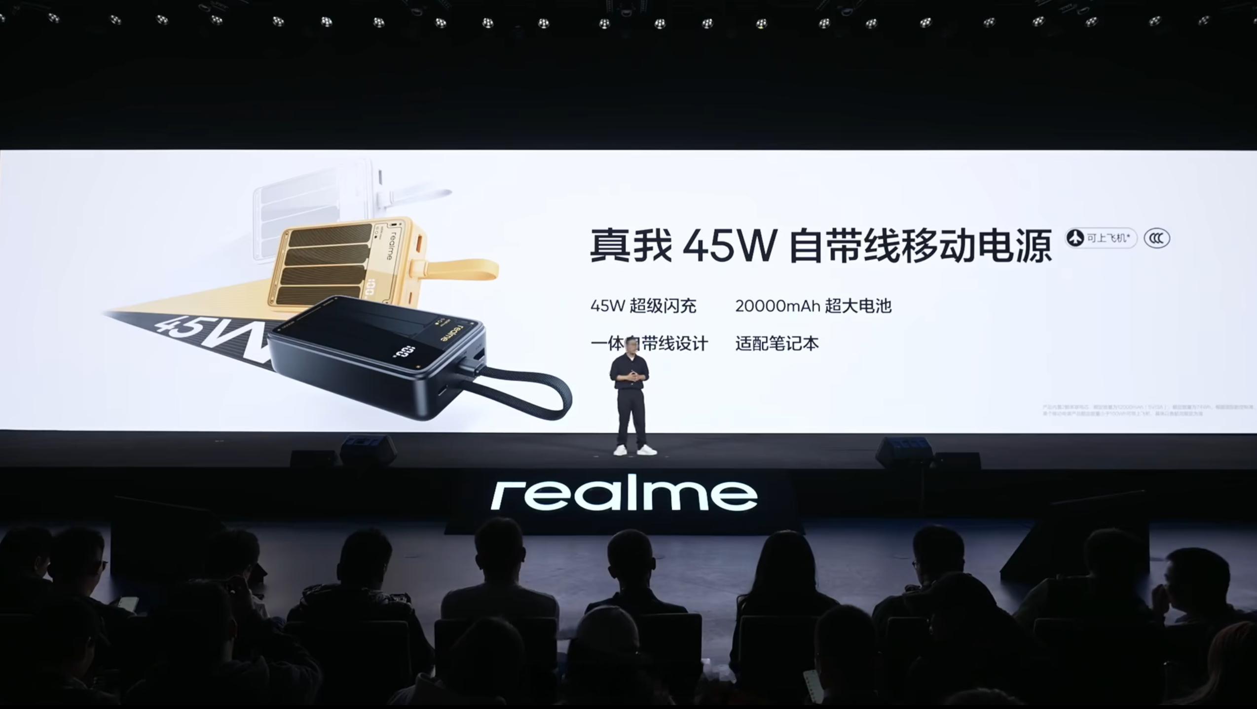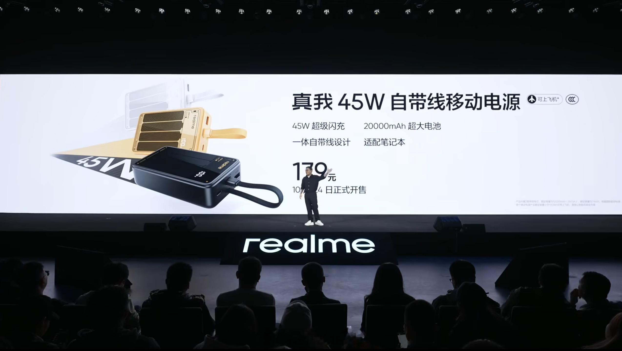 真我 45W 自带线移动电源 20000mAh,售价 179 元