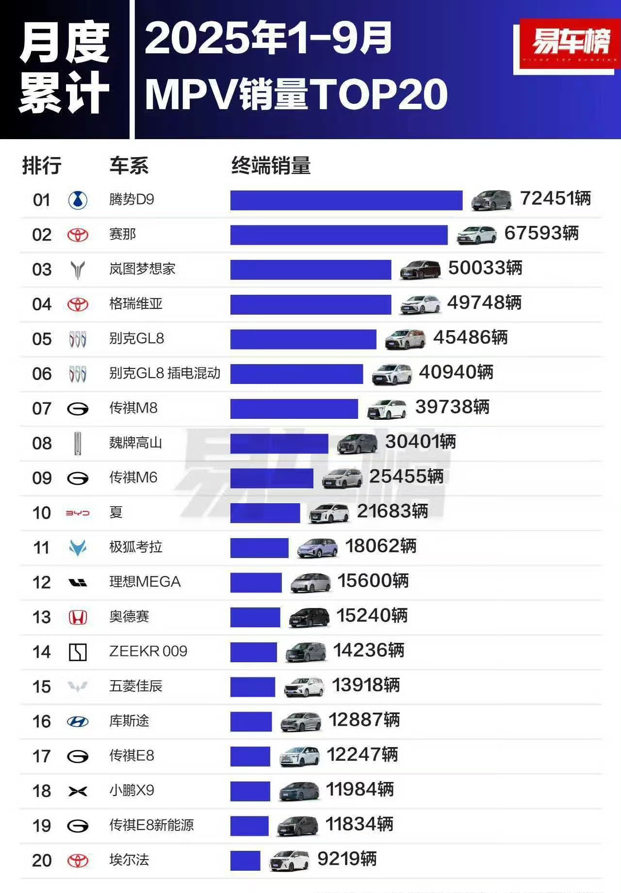 易车的MPV销量数据:1.赛那和格瑞维亚可以视作一款车,这哥俩加一起有点儿遥遥