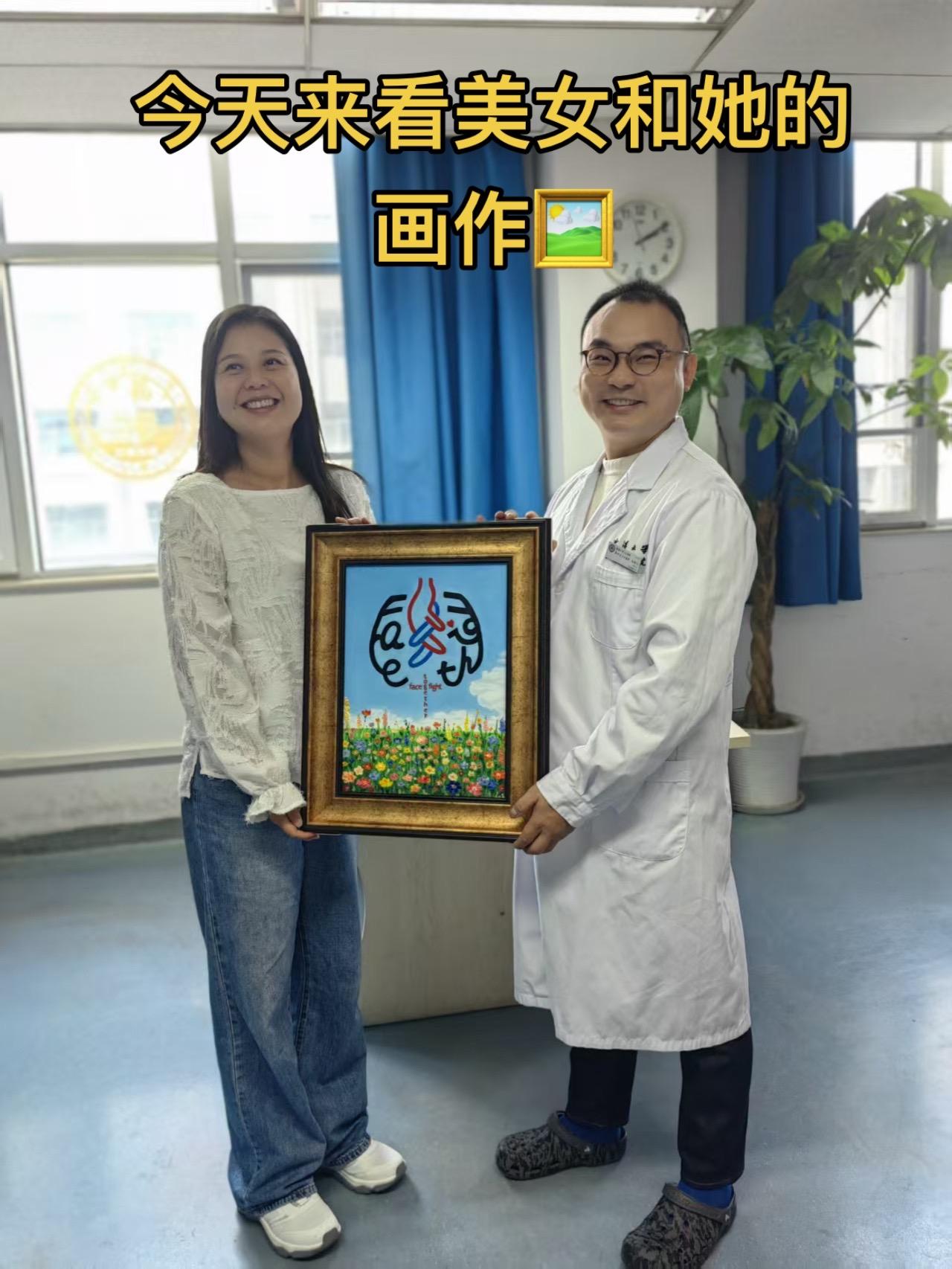 美女同学的画作。是同学,也是患者家属。把我设计的科徽画成了油画。整个科...