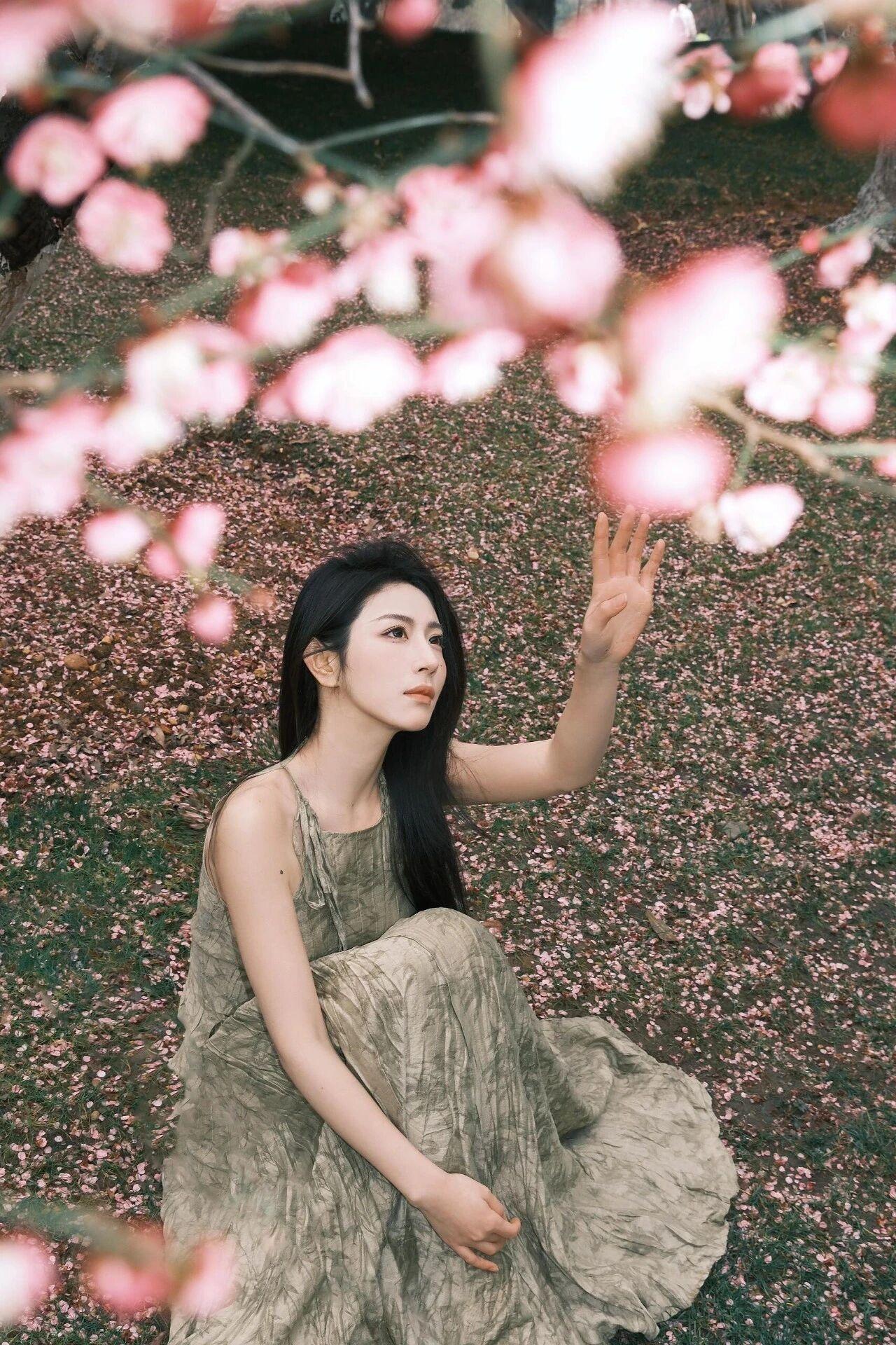 仙气缭绕的少女,轻抚花瓣,如梦如幻。看见美女你心情如何?
