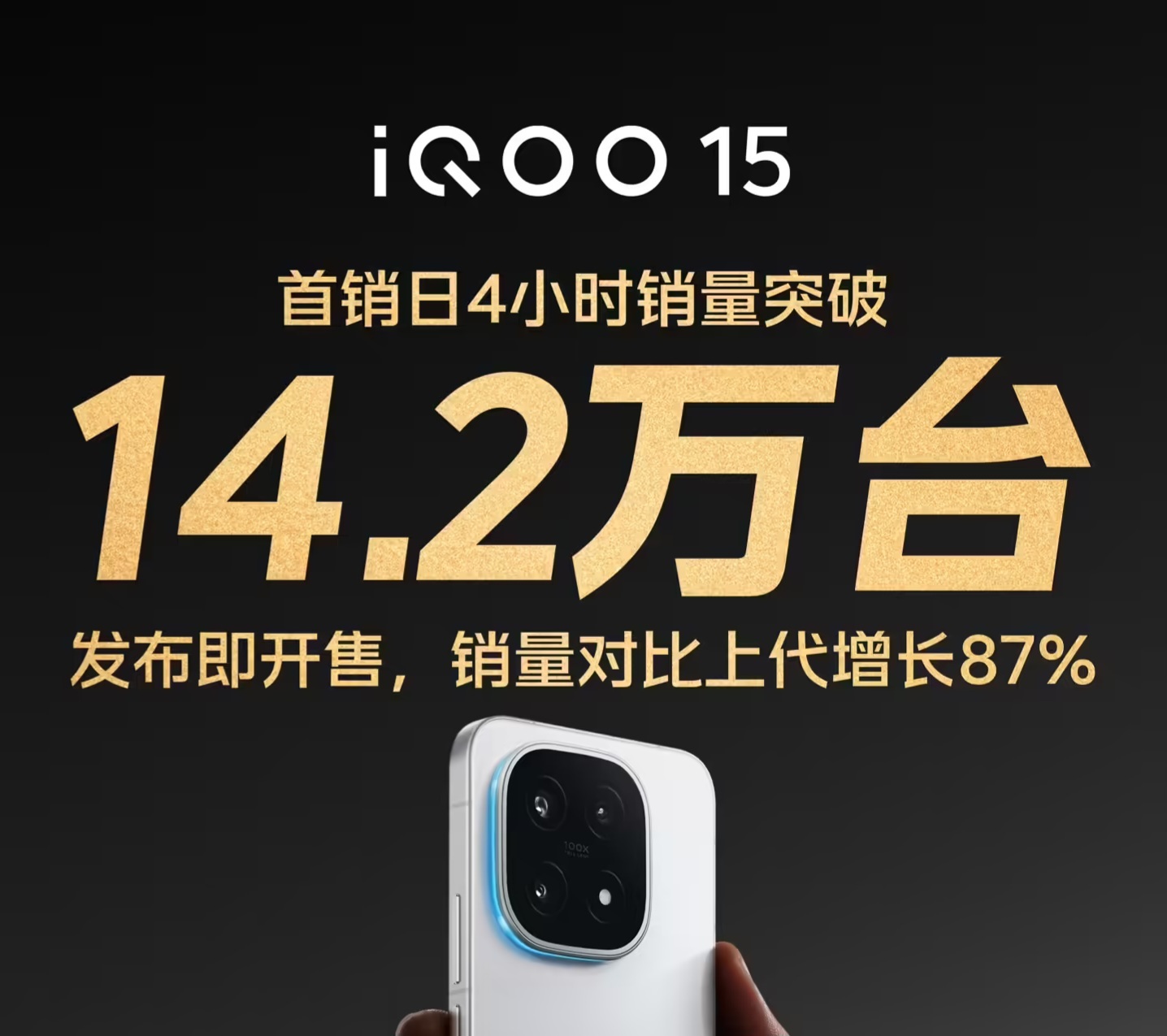 iQOO15,4小时卖了14.2万台,为数不多的敢公布销量数据的,好样的,说明