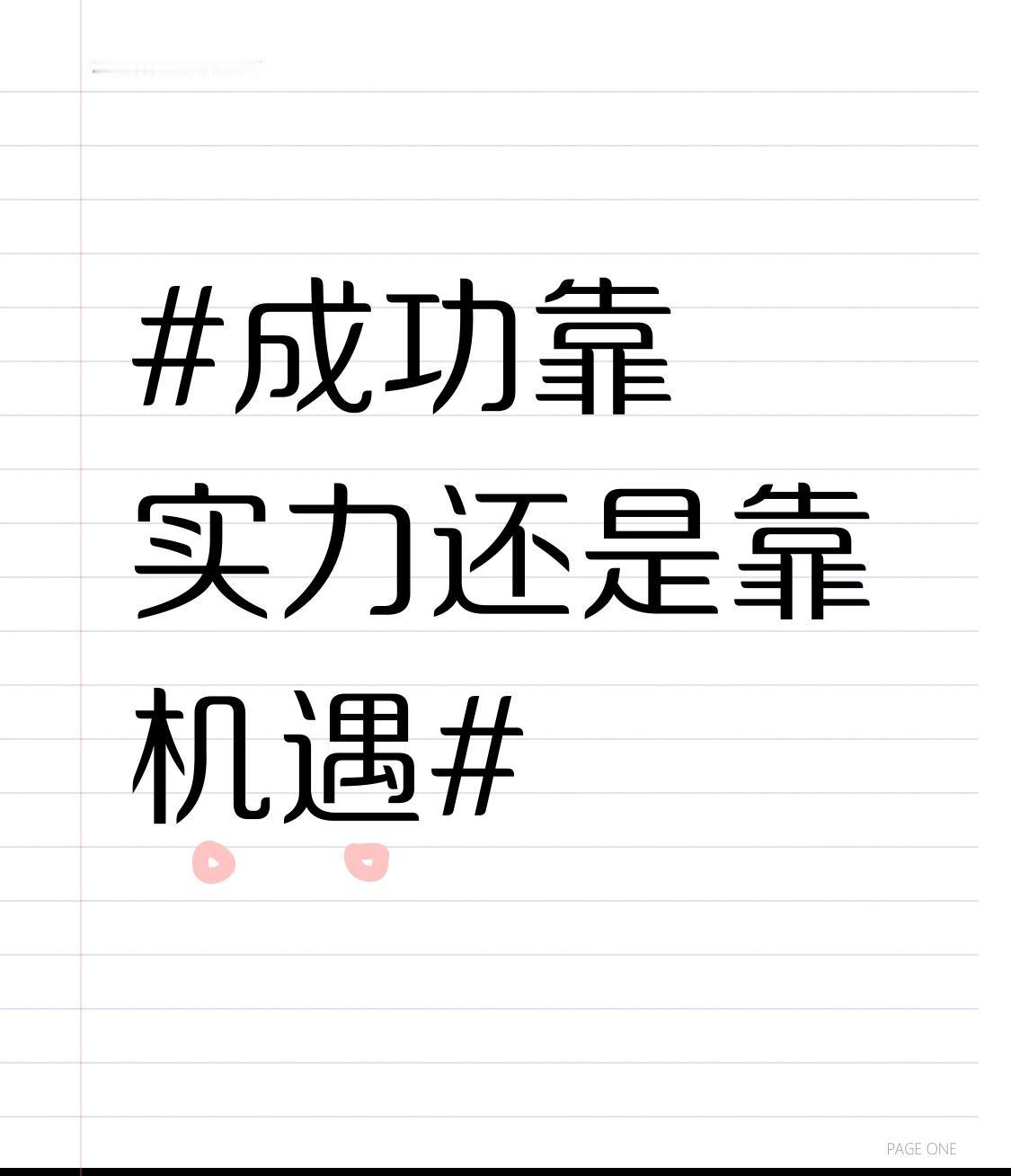 成功到底靠实力还是机遇,这事儿还挺值得琢磨。我觉得年轻时候会觉得成功靠实力,就像教育孩子,也会这么跟他们说。可进入社会就发现,机遇的重要性可能更大。 实力能后天弥补,但机遇可遇不可求。就拿孩子体测来说,有的孩子学习好但体育一般,家长花大量时间金钱去提升,结果一年下来体测成绩还是不理想。而有的孩子没怎么训练,却有不错表现。不过,就算有机遇,能不能抓住还得看实力。所以啊,成功是实力和机遇的交织,二者缺一不可。