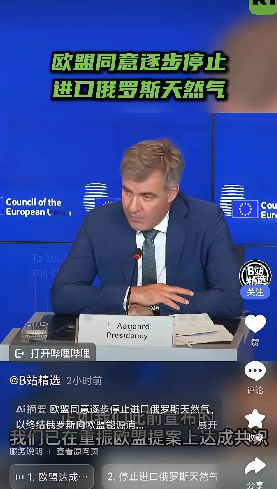 欧盟用最大力气把俄罗斯推到中国一边,欧盟将从2026年1月1日起,禁止成员国和俄罗斯签订新的进口天然气协议。 欧盟理事会决定,和俄罗斯现有的短期天然气进口合同,延续到2026年6月17日止,长期合同最迟于2028年终止。 欧盟的这个决定,对他们自己的影响不作评价,但欧盟的这个决定,事实上是用最大的力气,把俄罗斯推到了中国这一边。 欧洲的政客们或许还在为这份决议鼓掌,觉得斩断了俄罗斯的经济命脉。他们忘了,天然气管道里流淌的不只是能源,更是地缘政治的血液。俄罗斯这头北极熊被逼到墙角时,绝不会坐以待毙——东方的中国市场早已敞开怀抱。 看看数据就知道这场博弈多残酷。2021年欧盟进口的1550亿立方米天然气中,45%来自俄罗斯。如今要硬生生切断这条能源大动脉,欧洲工厂的机器靠什么轰鸣?民众冬天的暖气又靠什么保障? 莫斯科的动作比预想更快。Power of Siberia 2天然气管道谈判突然加速,这条每年500亿立方米输气量的巨龙,正朝着新疆方向狂奔。克里姆林宫发言人佩斯科夫说得直白:“东方已成为我们的战略优先方向。” 这让人想起经典的囚徒困境。欧盟以为在孤立俄罗斯,实际把对方推成了中国的“能源副手”。当中俄坐在谈判桌前共享油气大单时,布鲁塞尔的官员们可曾听见算盘珠的清脆声响? 欧洲的化工厂主们已经开始失眠。巴斯夫路德维希港基地每年消耗的俄罗斯天然气,足够整个柏林民用取暖。替代能源?挪威的油气田还在图纸上,美国液化天然气的价格标签能吓退银行家。 地缘政治的天平正在嘎吱作响。当中俄贸易额突破2000亿美元大关,当人民币和卢布在能源交易中欢快舞蹈,欧元区可曾嗅到金融秩序重构的气息?这不是简单的能源转向,而是世界格局的重新洗牌。 欧盟的决议文件上盖着庄严的印章,却透出战略短视的锈味。他们亲手把俄罗斯变成中国能源安全的压舱石,让北京获得了做梦都想要的议价权。这出戏码比莎士比亚悲剧更讽刺。 凛冬将至。当欧洲主妇为飙升的电费单落泪时,西伯利亚的天然气正沿着新管道欢快东流。地缘政治从来不讲温情,只认实力。今天的制裁大棒,或许正敲响明天多极世界的晨钟。 各位读者你们怎么看?欢迎在评论区讨论。