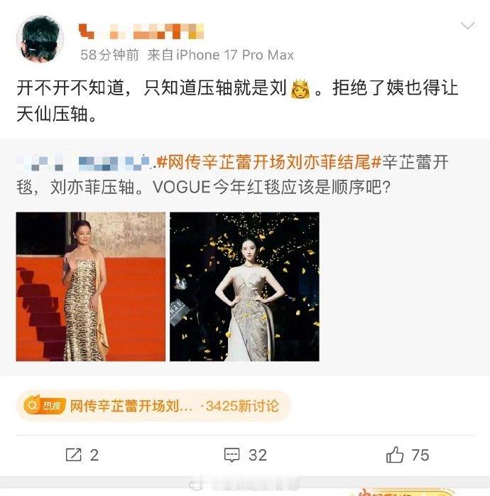 网传辛芷蕾开场刘亦菲结尾,VOGUE官宣了刘亦菲,VOGUE盛典官宣阵容