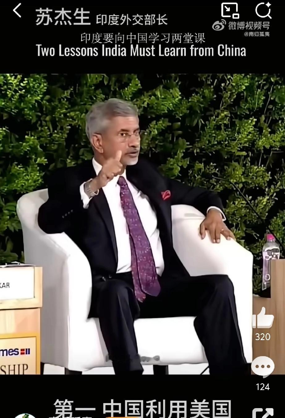印度外长发声: 我认为印度可以向中国学习两堂课,第一就是中国利用美国在过去30年里的国际秩序中成长,第二就是韬光养晦,不惹恼其他国家,不让世界不安全,这是值得我们好好学习的! 你们觉得印度外长说的这两堂课怎么样?是不是挺在理的?估计,印度外长苏杰生经常研究我们的发展思路。