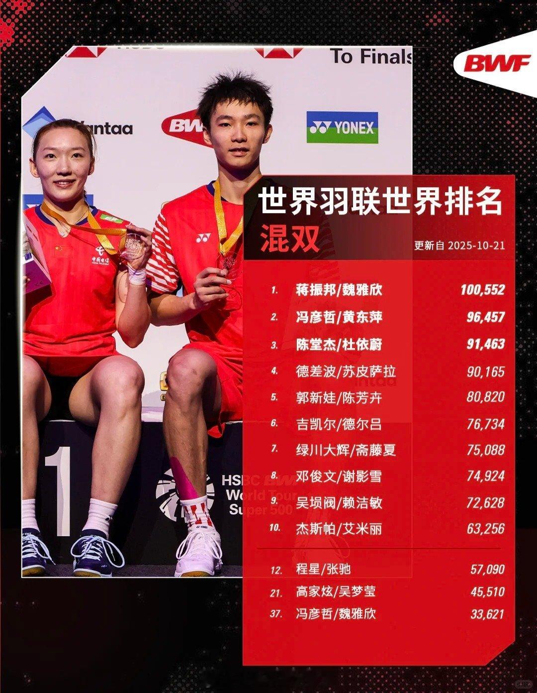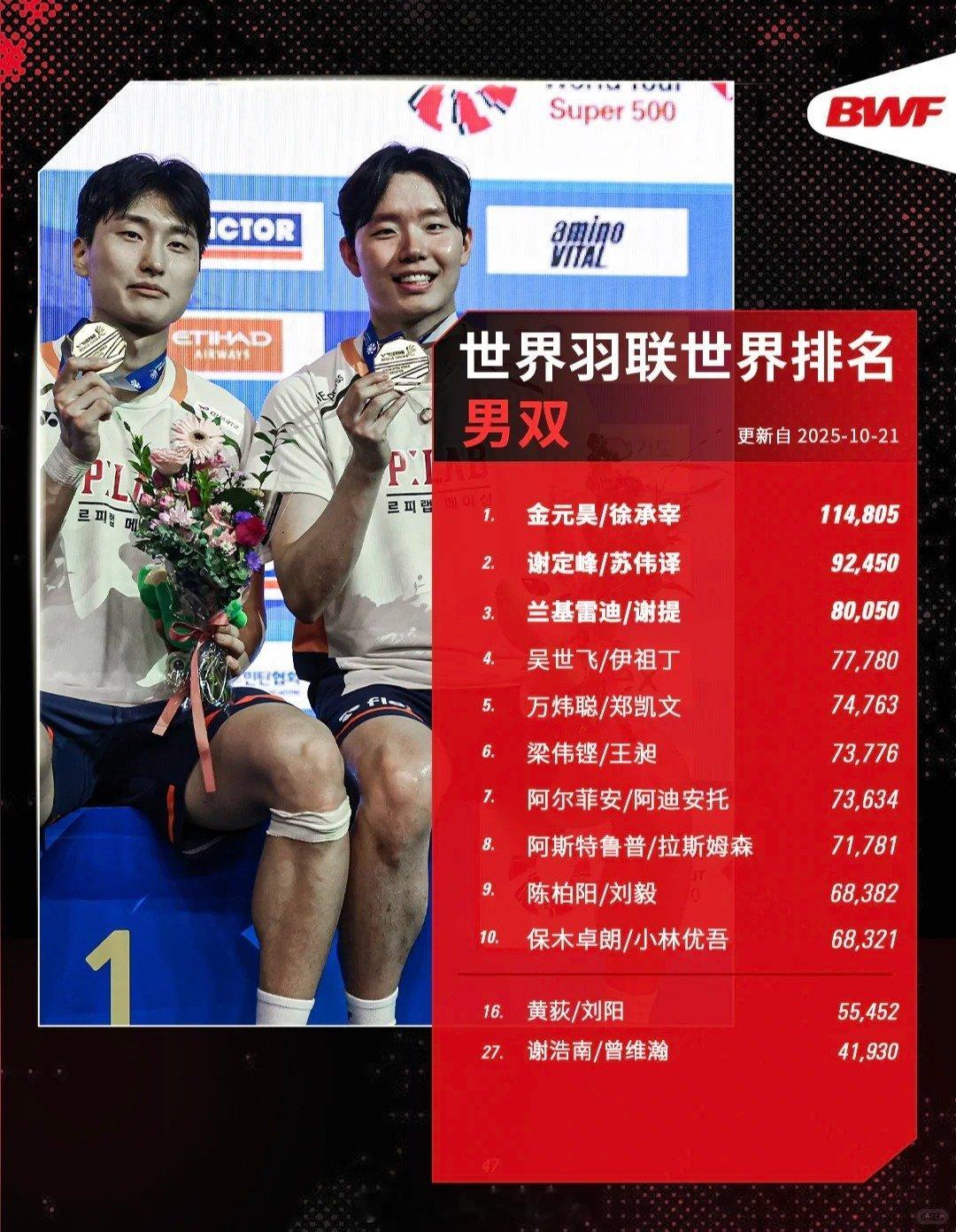 世界羽联最新世界排名揭晓世界羽联2025年第43周世界排名(截止至2025年1