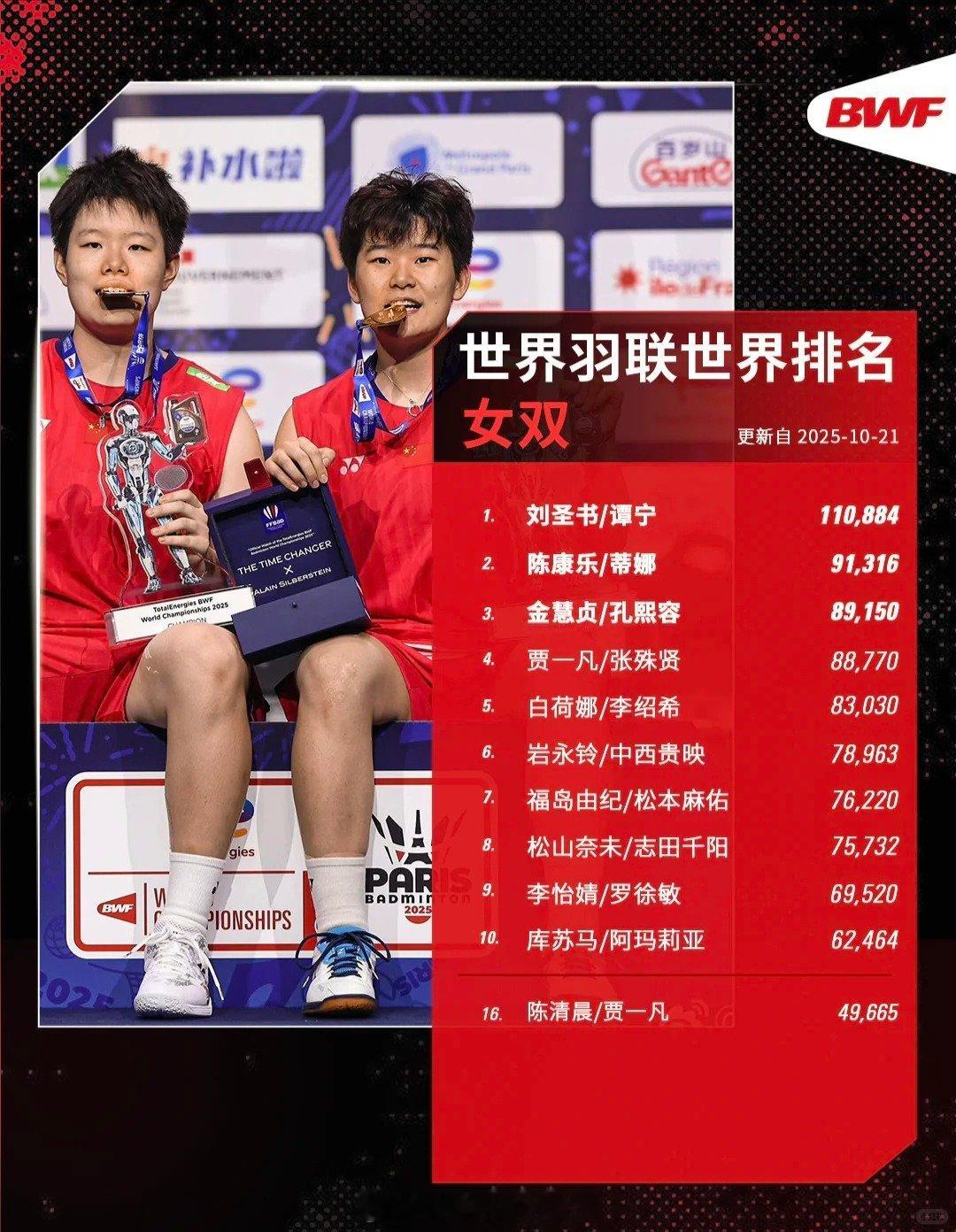 世界羽联最新世界排名揭晓 世界羽联2025年第43周世界排名(截止至2025年10月21日),国羽世界羽联各单项世界排名如下: