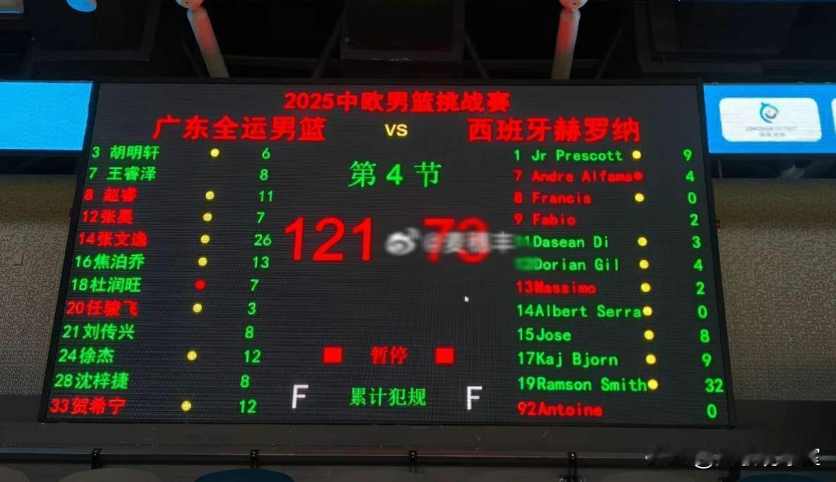 中欧男篮对抗赛,广东全运男篮大胜西班牙赫罗纳51分,热身赛至今未尝败绩,以一波7