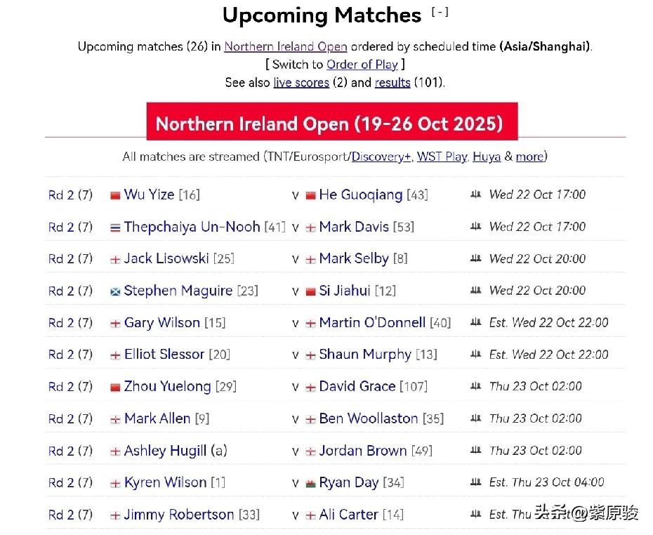 袁思俊晋级北爱尔兰公开赛16强,庞俊旭3-4被希金斯绝杀,亚伦·希尔绝杀霍金斯。