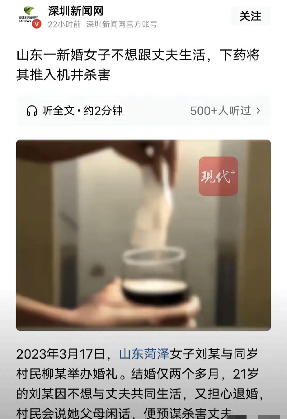 山东菏泽这起案子,真是把“愚昧的面子”能有多毒,照得明明白白!21岁的新娘怕离婚被村里人说闲话,居然把刚结婚俩月的丈夫往死路上推。 她算得太“精”了:先哄丈夫喝醉酒,再骗他吃下安眠药,最后以捞鱼为由把人哄到机井边。丈夫坠井后四次哭喊求救,她开车往返好几趟,愣是见死不救,最后还盖上井盖扬长而去。 古人说“二人不看井”,原是怕人心歹毒,可这枕边人的心狠,比古话里的阴谋更刺骨。她怕的是闲言碎语,却敢犯杀人的重罪,说到底是被陈旧观念捆住了脑子,又被恶念吞了良心。 死刑的判决大快人心,可两条命、两个家也毁了。真想问,那些可能存在的闲话,到底能比人命重多少?你们觉得该怎么戳破这种“面子杀人”的愚昧?