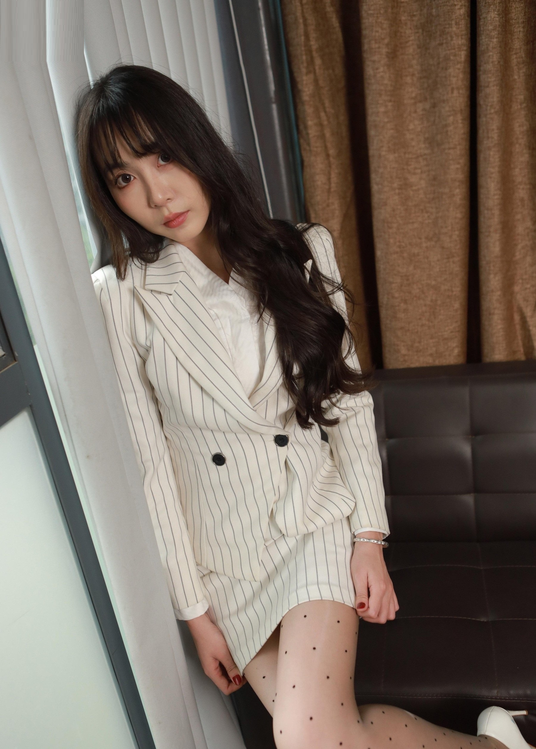 👗 想要在职场上展现不一样的自己?这款竖条纹西装裙绝对是你的不二之选!经典与时尚的完美碰撞,让你瞬间成为办公室的焦点。👀 👠 搭配一双白色高跟鞋,不仅拉长了腿部线条,更添几分干练与优雅。波点丝袜的巧妙点缀,更是为整体造型增添了一抹性感与俏皮。💃 💇♀️ 长发披肩,随风轻扬,每一个转身都散发着成熟女性的魅力与自信。无论是正式场合还是日常办公,这款西装裙都能让你游刃有余,尽显风采。💪 💼 穿上它,你就是那个既能驾驭职场风云,又不失女性柔美的时尚达人。快来一起解锁职场轻熟风的新姿势吧!🔑