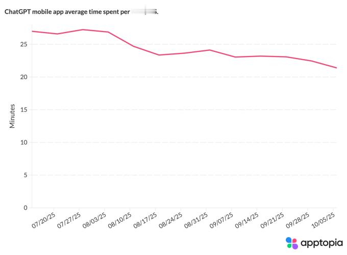 其他因素可能在这里发挥作用,如谷歌 Gemini 的竞争。然而,Apptopia 指出,ChatGPT 的每 DAU 平均花费时间、平均会话数之前就下降了。