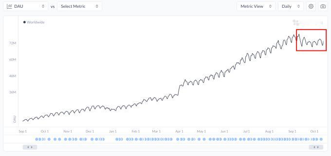 自 7 月以来,美国每DAU的平均花费时间下降了 22.5%,美国每 DAU的平均会话数也下降了 20.7%。