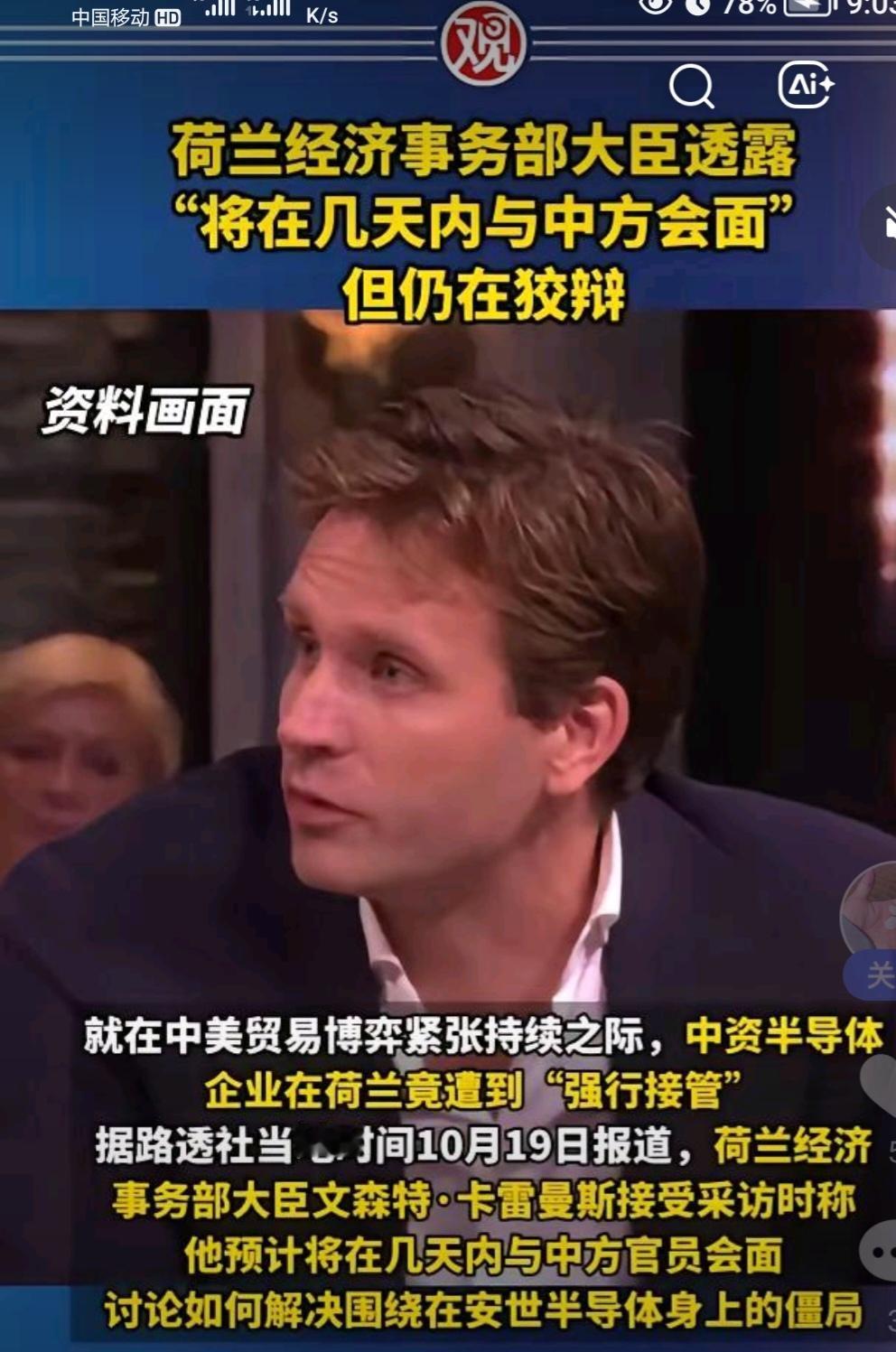 荷兰经济大臣透露:将在几天内与中方会面解决安世半导体问题僵局。 近期,就在中美贸易博弈紧张持续之际,荷兰政府强行接管中国闻泰科技旗下子公司安世半导体,安世的中国籍CEO被撤换,中国迅速出台了多项措施强力反制,其中包括对安世半导体芯片实施出口禁令,这一举动使欧洲严重依赖芯片的汽车企业慌了神,纷纷施压荷兰尽快解决安世纠纷问题。 在中国迅速强力反制下,荷兰政府的态度也软化,多次请求与中国协商解决安世半导体问题,还提出芯片出口豁免的无理要求。然而,对于荷兰中国的态度是不接受豁免、不开启谈判,因为荷兰在“强行接管”中国企业时信用早已破产,任何形式的手下留情都可能被视为软弱,在当前中美激烈博弈下任何国家“选边站”做出损害中国利益者必将被“杀鸡儆猴”,中国只有打得一拳开、免得百拳来。在次双方属于僵局情况下,荷兰政府为了缓和紧张关系,到处放软话有时干脆狡辩撇清与此事件的关系。 据路透社当地时间10月19日报道:“荷兰经济事务部大臣文森特.卡雷曼斯在接受采访时称,他预计将在几天内与中方官员会面,讨论如何解决围绕在安世半导体身上的僵局”。 这位荷兰部长还狡辩称,中国人“感觉我们”与美国人联手干预安世半导体,这还用怀疑吗?是众所周知明人眼里都看得出的事情。然而,更奇怪的是荷兰政府还迅速划清界限称此事不是政府干的。据英国《金融时报》10月17日报道,荷兰经济部长卡雷思曼斯向议会解释安世半导体事件时表示:“外部顾问制定了这计划,他们没有遵循正常的内部程序,荷兰政府对这个计划不知情,也没有这个意图”。对此,有网友评论称:“敢做不敢当,也太荷兰了吧!”。 其实,中美博弈正在关键时刻,任何国家“强出头做美国帮凶”干起打压中国企业发展或损害中国发展利益的行为,必将受到中国“痛击”。这件事也警示其它国家,任何想做了损害中国人民利益的事,不受任何影响的想法,面对今天的中国已经不太现实了,必须丢掉这种幻想。