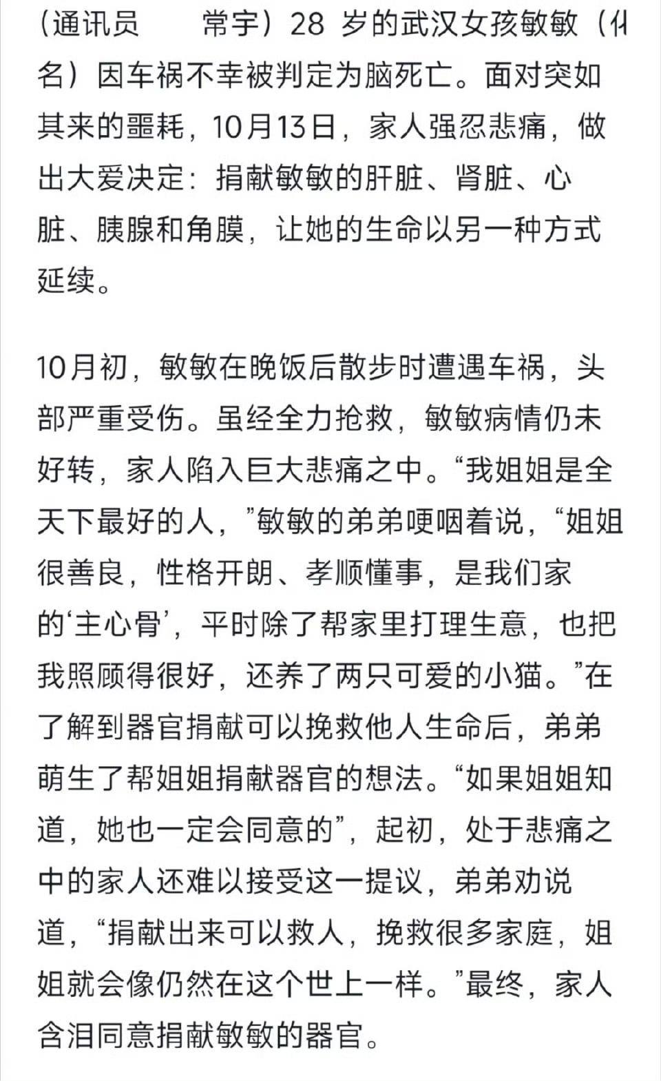 脑死亡后还能“存活”?28岁女生以这种方式让3人重获新生、2人重见光明 武汉28