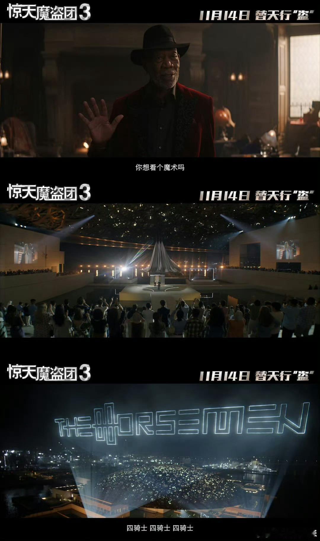 惊天魔盗团3内地定档真正的魔术主理人杀回来了 初代四骑士十二年归位!11.14同步开席,颠倒走廊藏玄机,血色钻石局等你来拆!