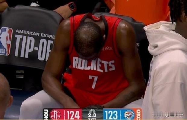 阿杜很自责!第二个加时赛最后时刻,杜兰特被亚历山大造犯规,直接六次犯规下场! 亚历山大两罚全中,反超一分,最终雷霆双加时险胜火箭,这场比赛确实是非常精彩! 有球迷调侃道,杜兰特带领雷霆绝杀了火箭! 乍一看好像没有任何毛病,毕竟杜兰特曾经也是雷霆最重要的球员! 但是如今物是人非,最后杜兰特被亚历山大给晃起来了,被吹了犯规! 当然了,也有球迷调侃亚历山大就是罚罚罚,一直都在罚球,受裁判照顾! 没能帮助火箭在雷霆主场拿到胜利,杜兰特非常自责和沮丧,他坐在替补席低着头,情绪低落! 不过,这支火箭队能够跟卫冕冠军雷霆队打到最后一刻,还是非常有实力的! 如果范乔丹不受伤的话,这支火箭有人可以组织进攻,那会更加恐怖!
