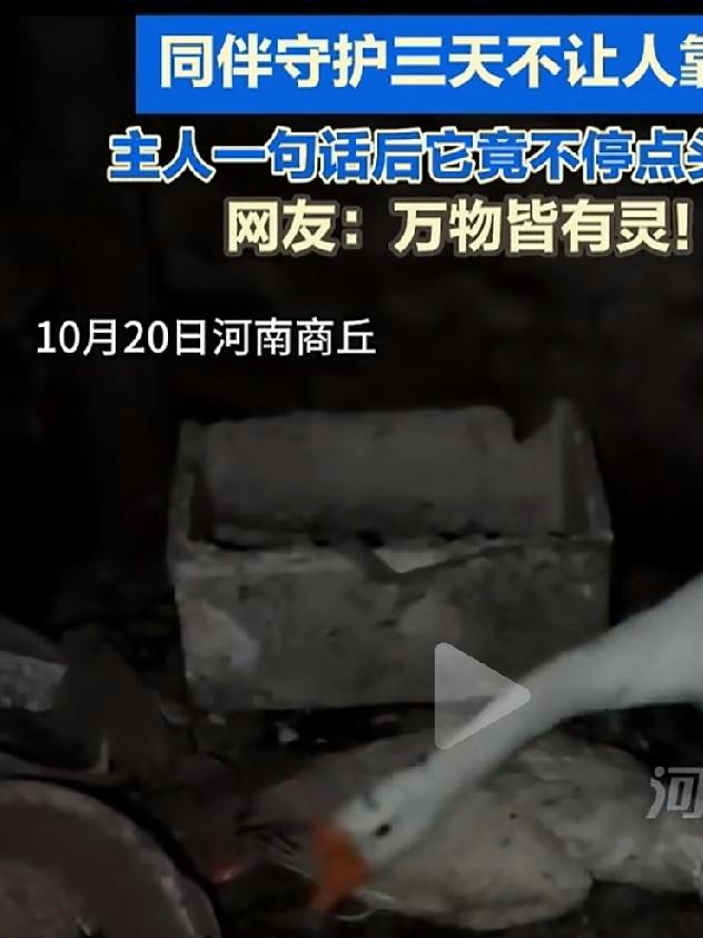 相依为命十几年的大白鹅离世,同伴守护三天不让主人靠近,主人的一句话竟让它点头致谢