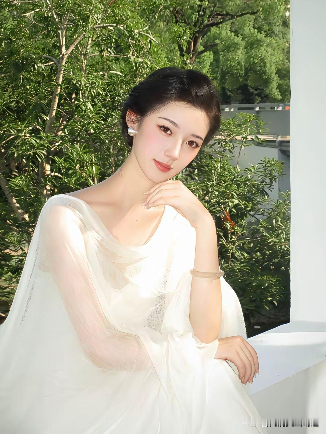 优雅白裙少女,静坐窗边,花影摇曳,岁月静好。气质穿搭怎么穿才恰到好处?