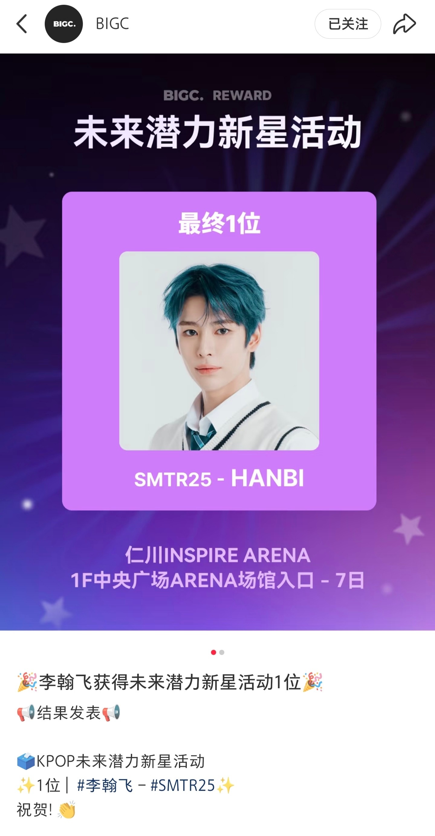 李翰飞获得未来潜力新星活动1位,恭喜🎉​​​