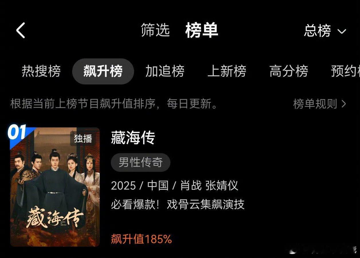 《藏海传》的剧粉每天都爽 的头皮发麻,播出之后快6个月了,优酷飙升榜第1