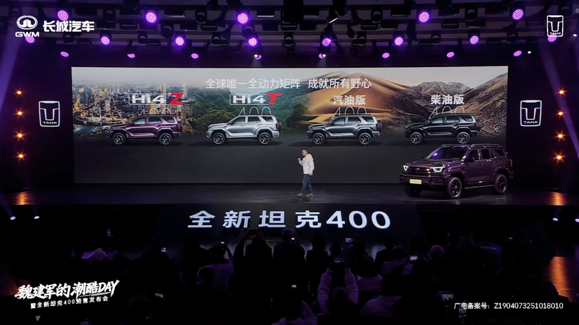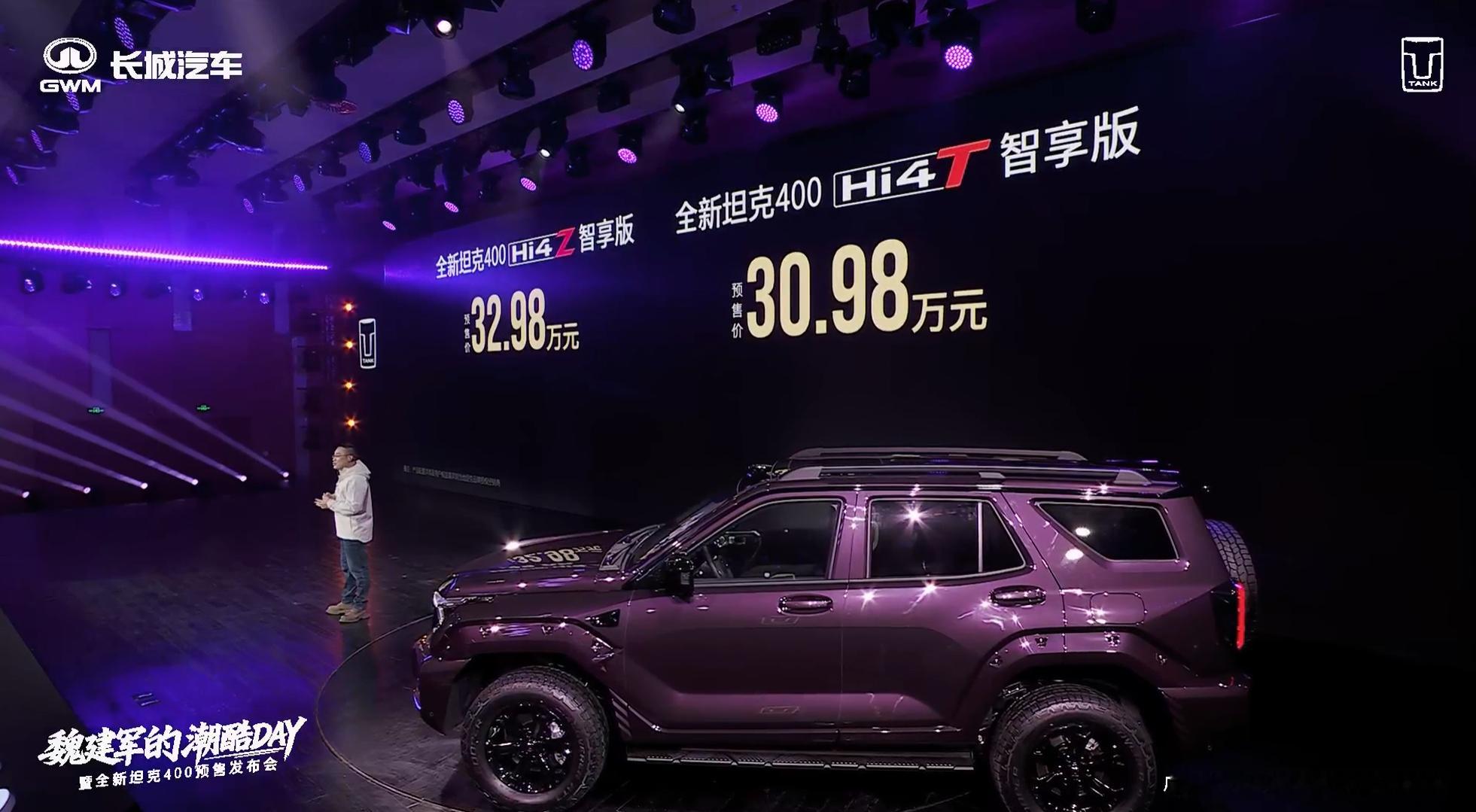 新款坦克400昨晚正式开启预售,推出Hi4-Z与Hi4-T两种动力版本。